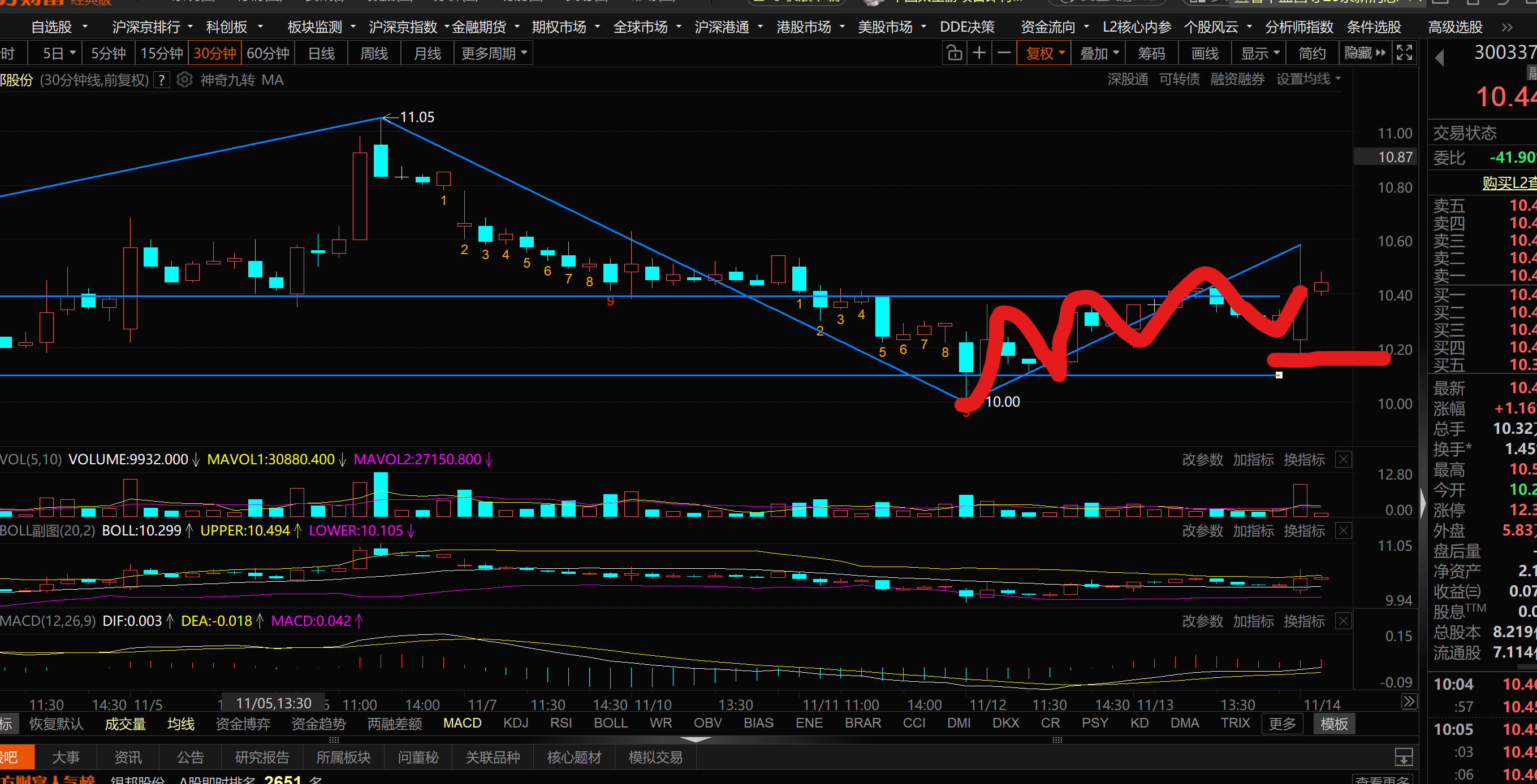 早上一个假摔 打掉 5分钟走势中枢下轨道 。