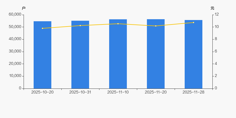 2025年10月20日至今,公司股东户数有所增长,区间涨幅为1.83%。2025年10月20日至2025年11月28日区间股价上涨9.70%。