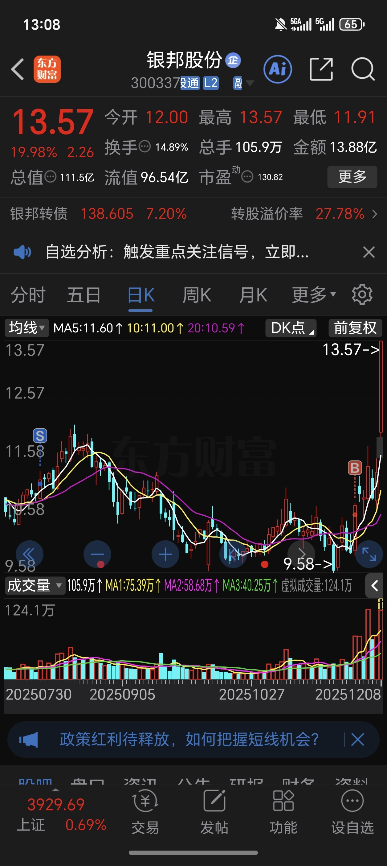 $银邦股份(SZ300337)$ 上上周五异动,10.58勇敢加仓