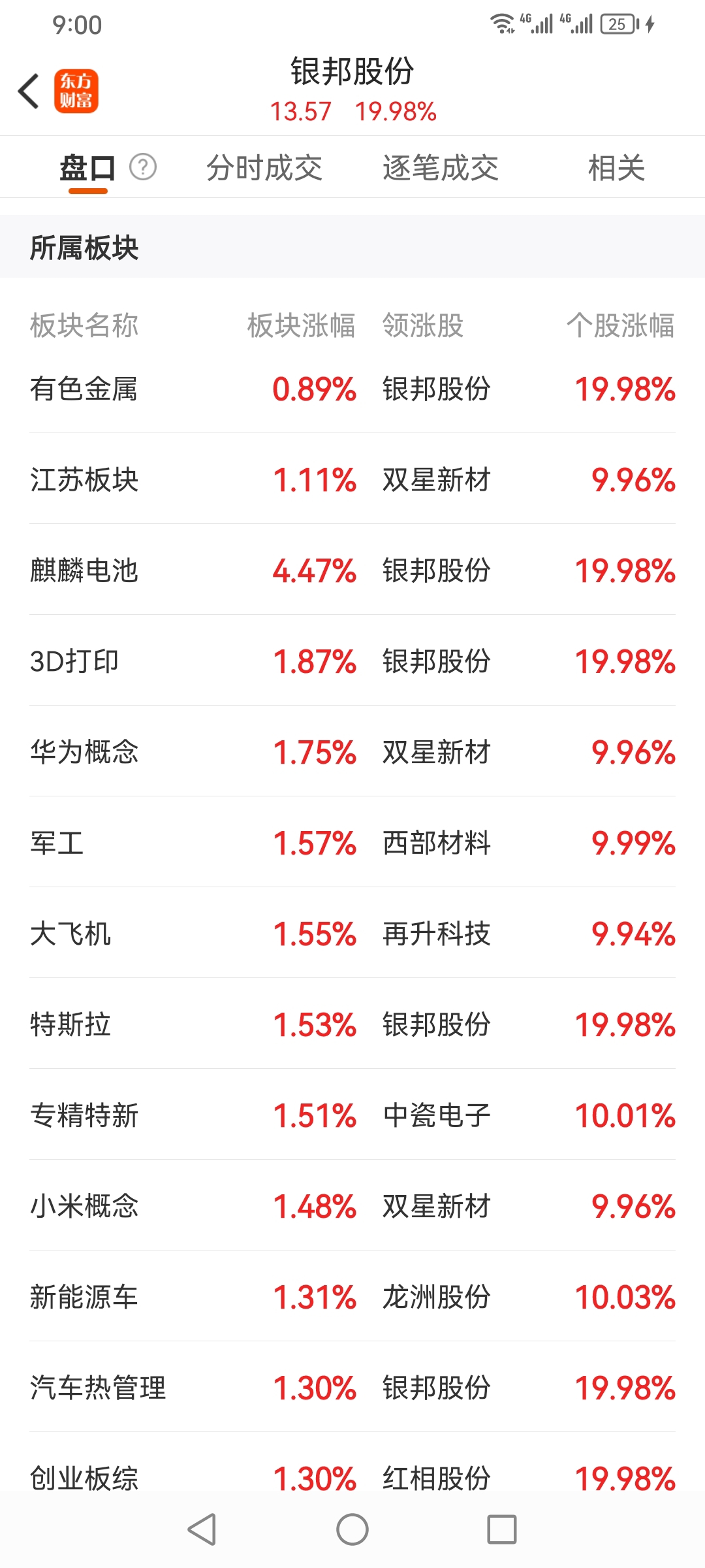 方军股票今天涨停板赚钱。买进银邦股份,买进双星新材...