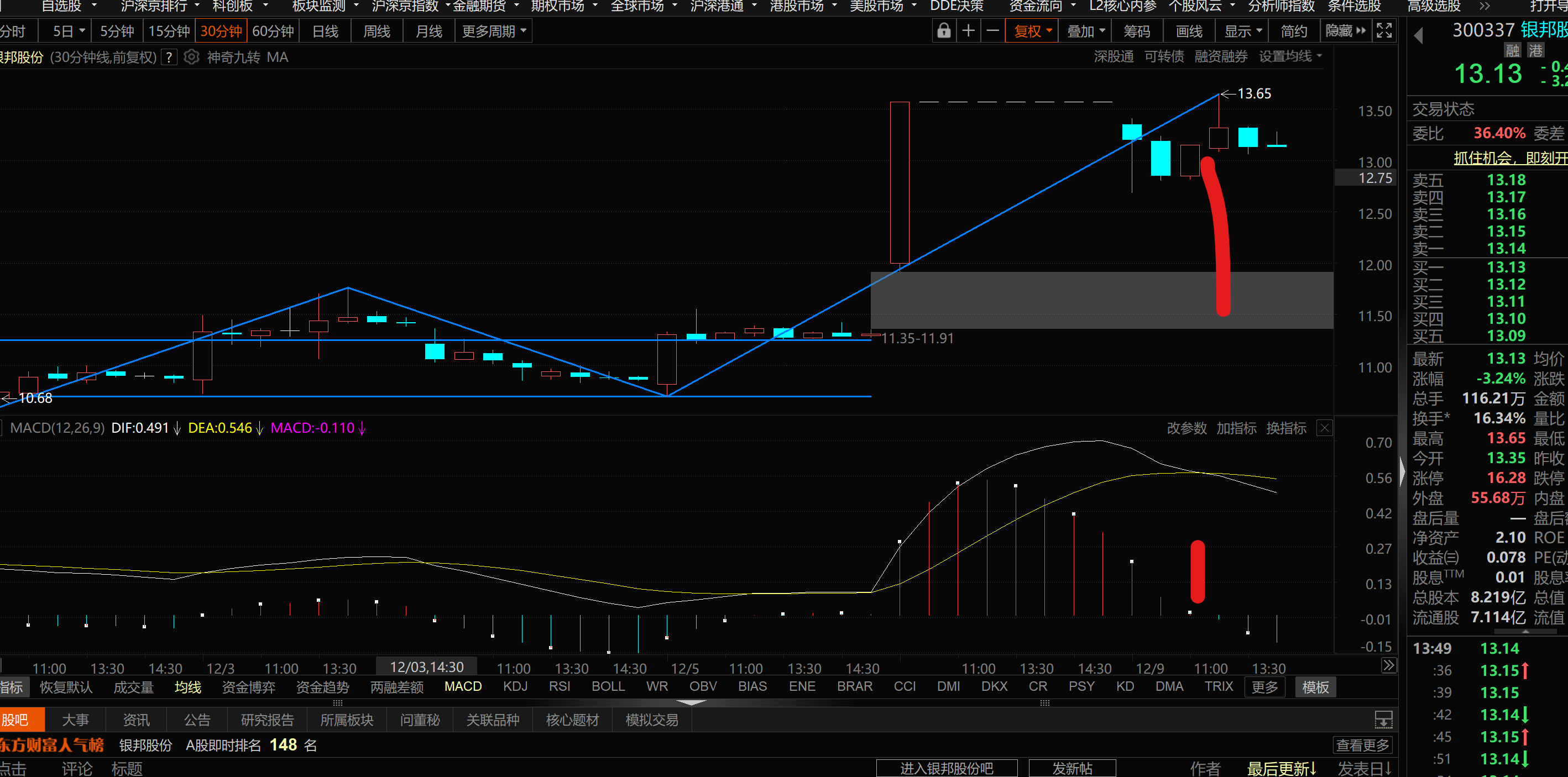第一类卖点已经成立 30分钟级别出现背驰 要是顶分型 底分型后出二卖