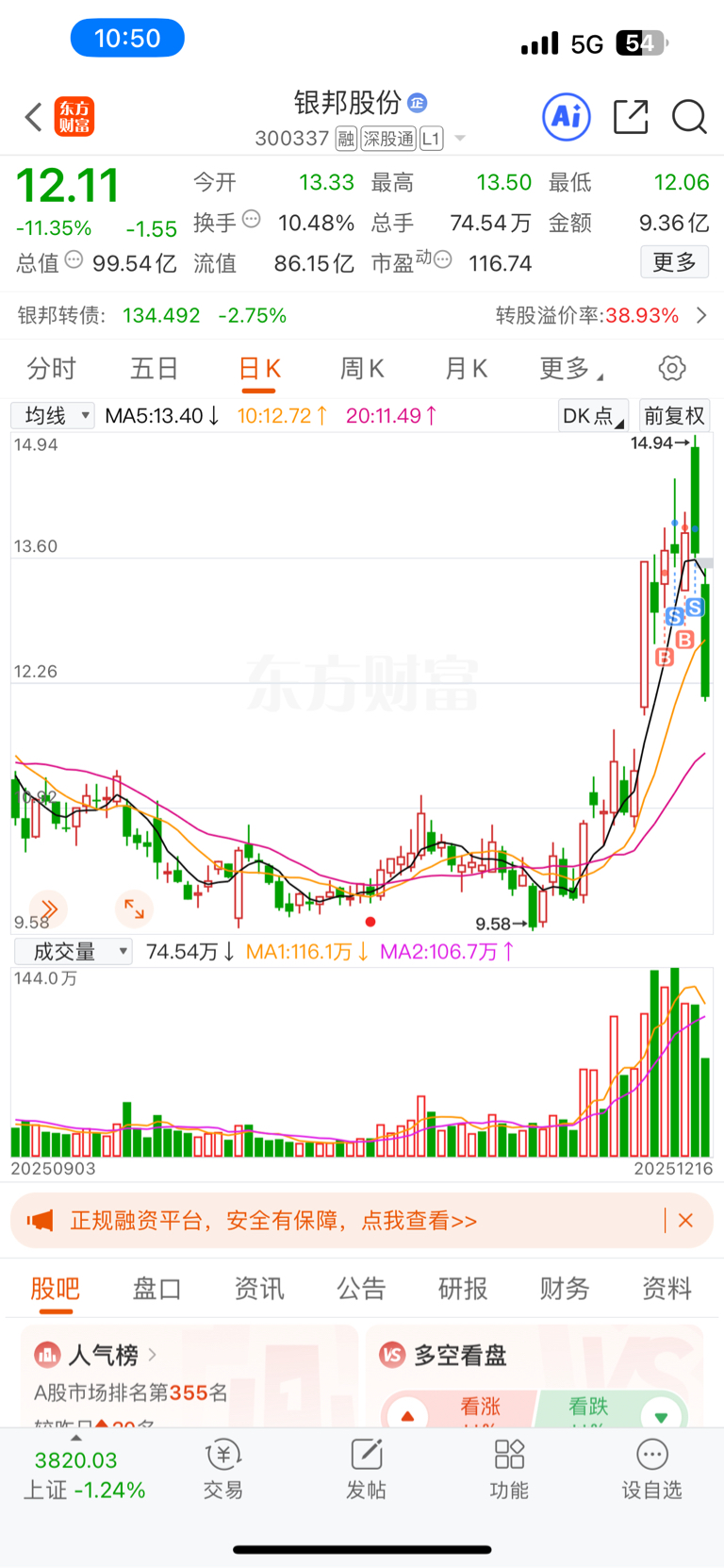 $银邦股份(SZ300337)$ 真吓人,还好昨天清仓了