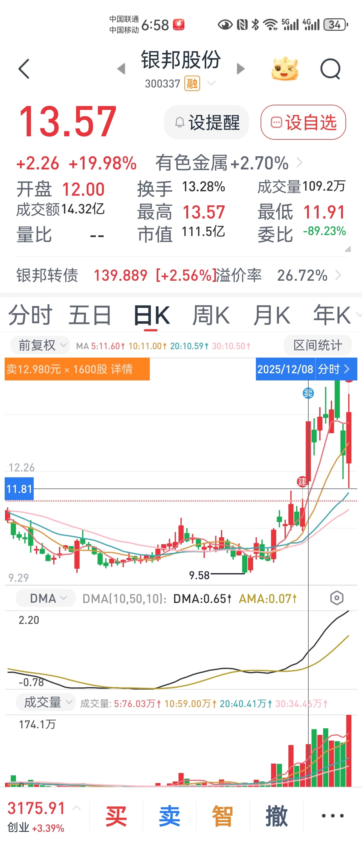 12月8日卖出去的加三倍买回来了,没想到还能买到这么便宜的筹码。只是后悔买少了。
