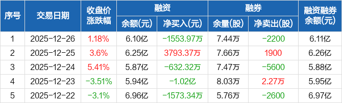 银邦股份:融资净偿还1553.97万元,融资余额6.1亿元(12-26)