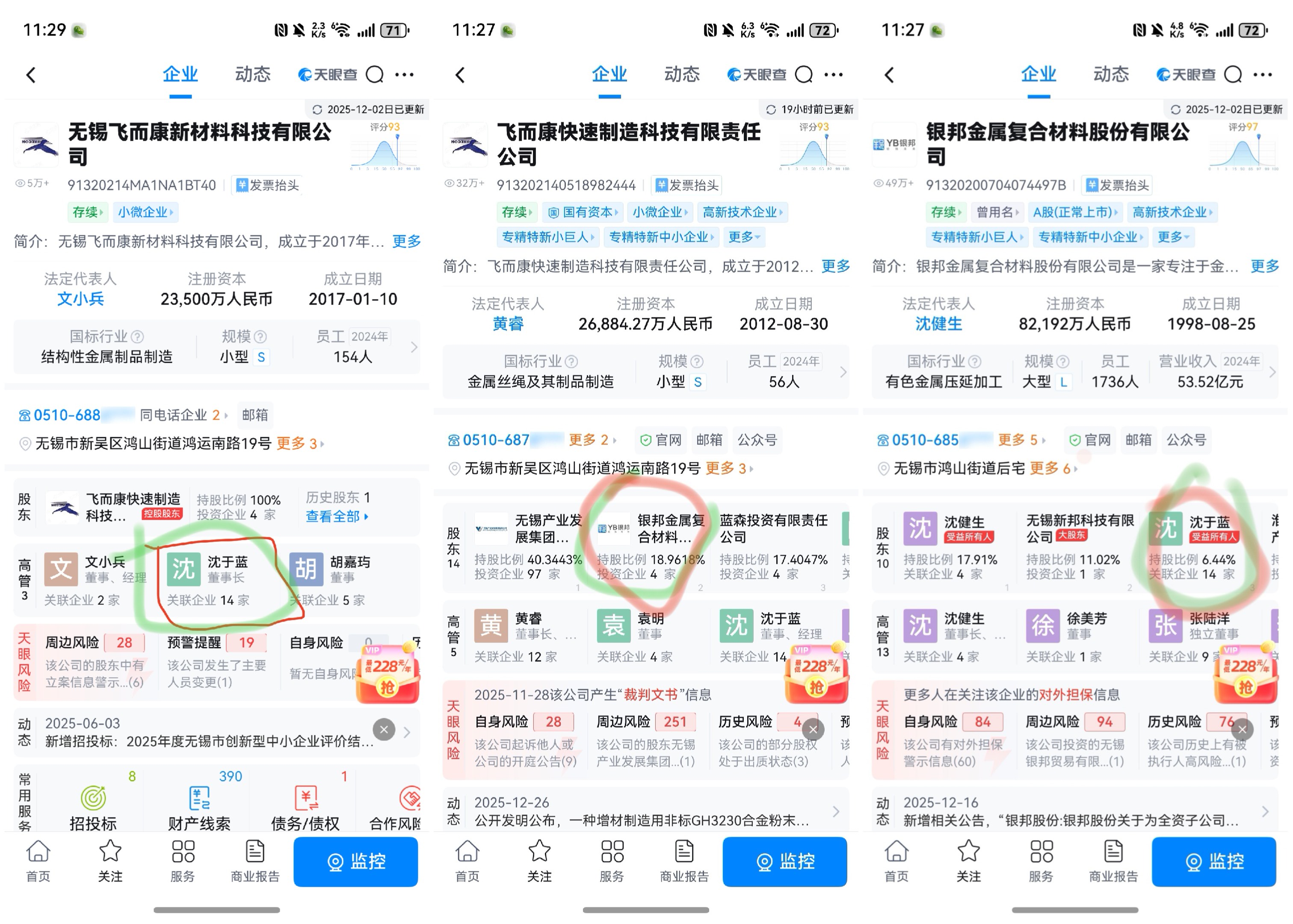 这个沈于蓝是同一个人吗?飞而康董事长是银邦股份懂事长的儿子和联合控制人!我了个豆