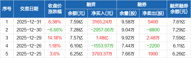 银邦股份:融资净买入3165.24万元,融资余额7.59亿元(12-31)