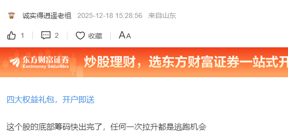 温馨提示: 1.根据《证券法》规定,禁止编造、传播虚假信息或者误导性信息,扰乱证券市场;2.用户在本社区发表的所有资料、言论等仅代表个人观点,与本网站立场无关,不对您构成任何投资建议。用户应基于自己的独立判断,自行决定证券投资并承担相应风险。《东方财富社区管理规定》