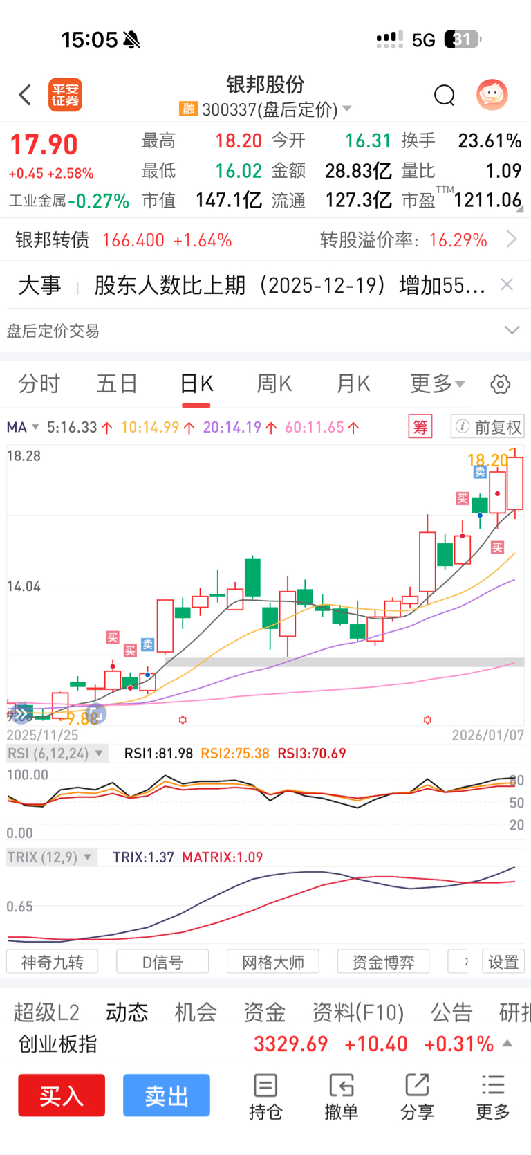 $银邦股份(SZ300337)$ 今天忍住没走明天不是大涨就是大跌了博弈一把