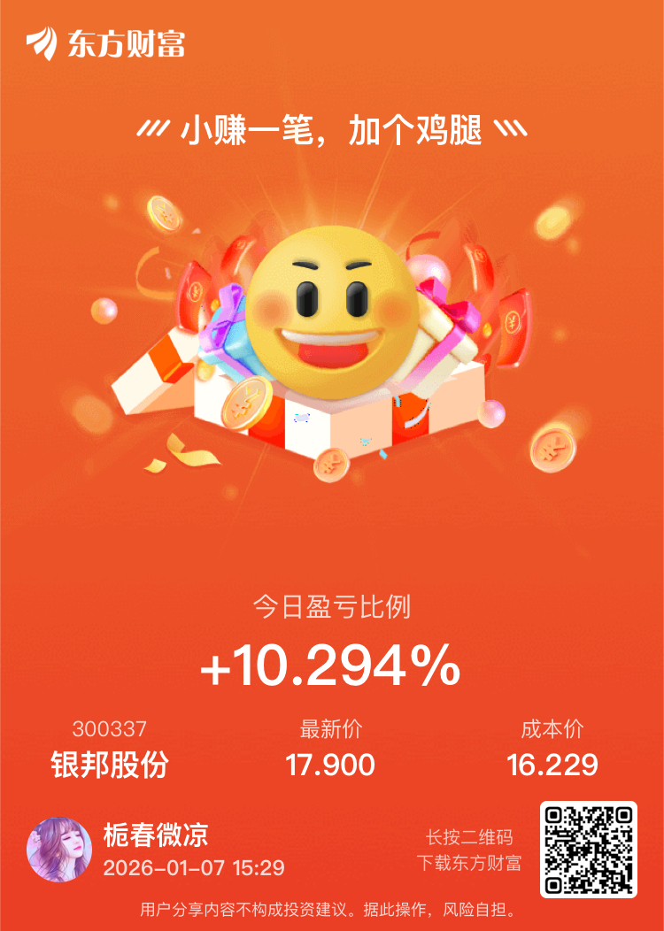 $银邦股份(SZ300337)$ 还不错、撑死胆大,饿死胆小!