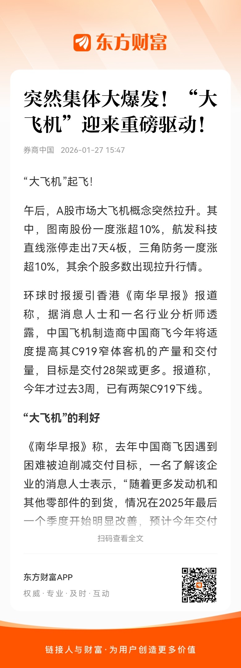 突然集体大爆发!“大飞机”迎来重磅驱动