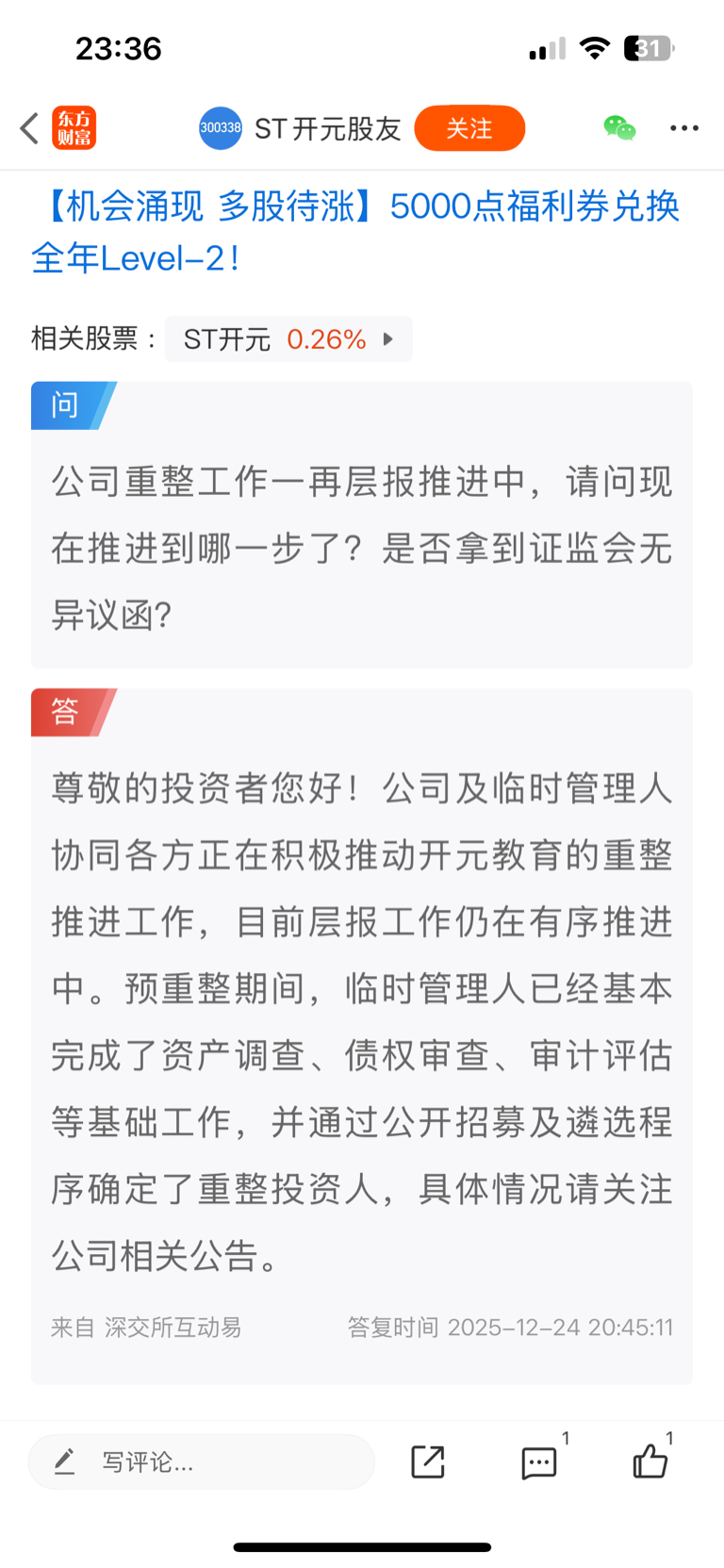 $ST开元(SZ300338)$ 重整重大利好,明天4元抢筹,5分钟涨停板