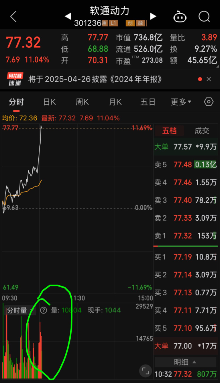 软通这才叫拉升,哪像润和,拉一根,紧跟着绿一根,立马就卖,明显触发量化,走两步,