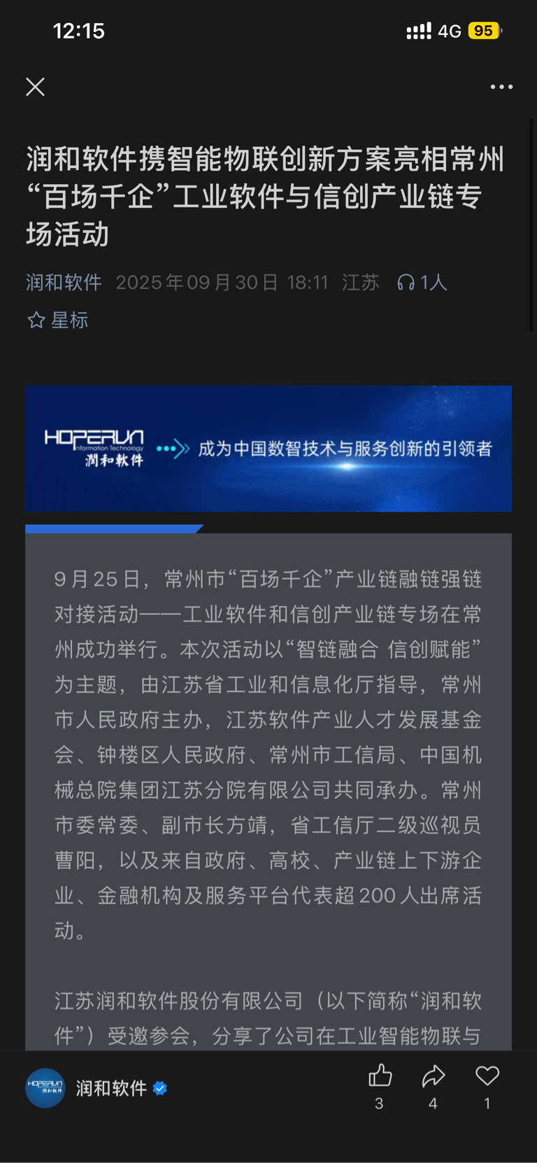 $润和软件(SZ300339)$ 工业软件信创产业龙头,风来了挡也挡不住