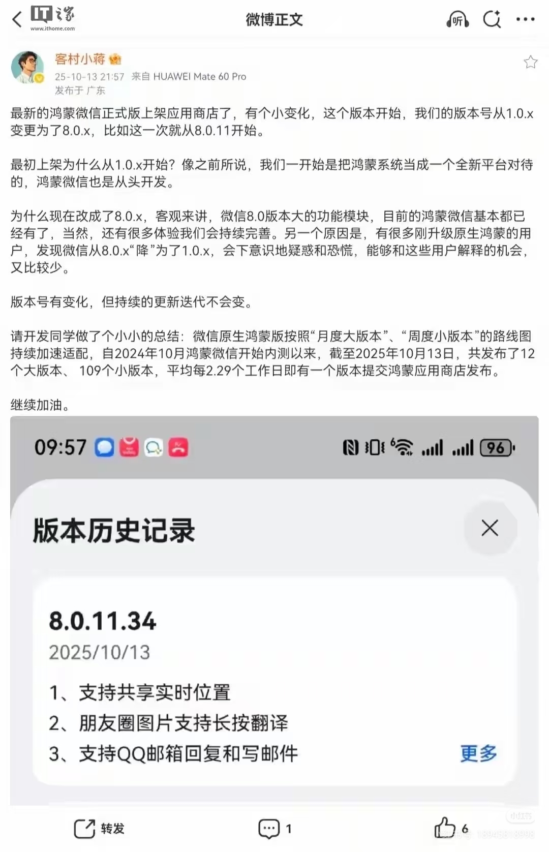 挺唏嘘的,去年鸿蒙刚出来的时候大家还在嚷嚷着没有微信,腾讯拖后腿,现在微信版本号