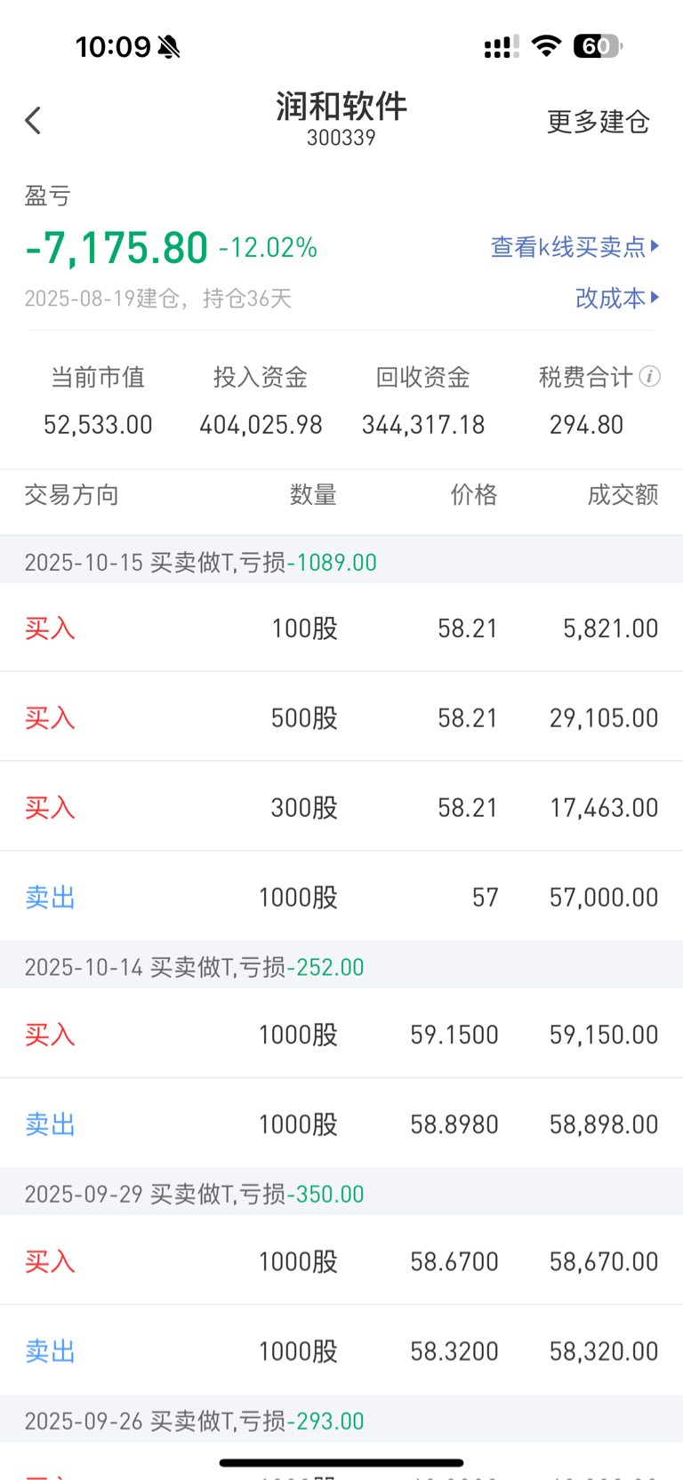 $润和软件(SZ300339)$ 越T成本越高,救救我