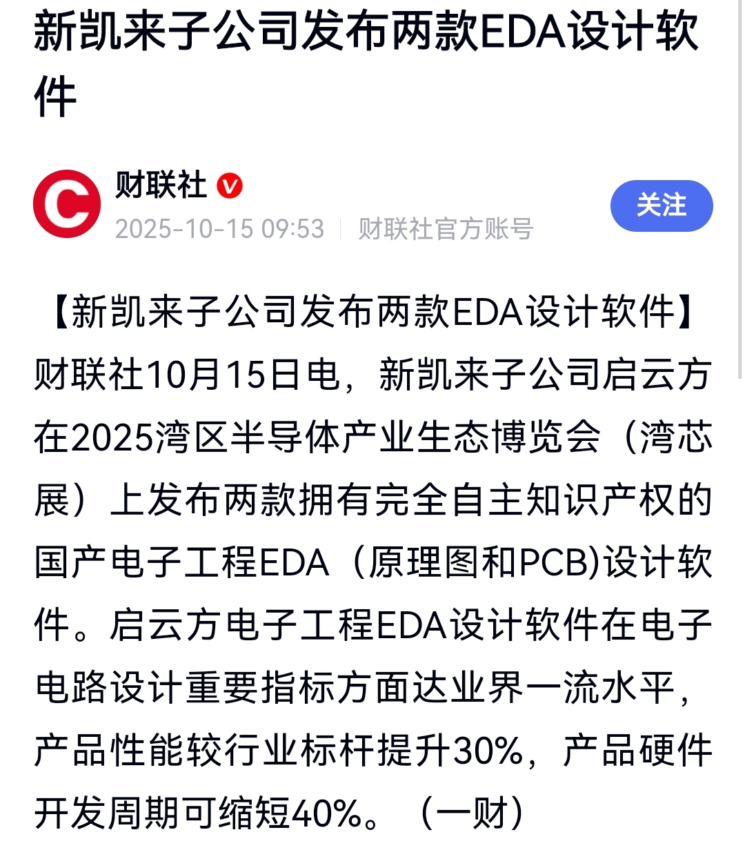 $润和软件(SZ300339)$ EDA、新凯来、润和软件