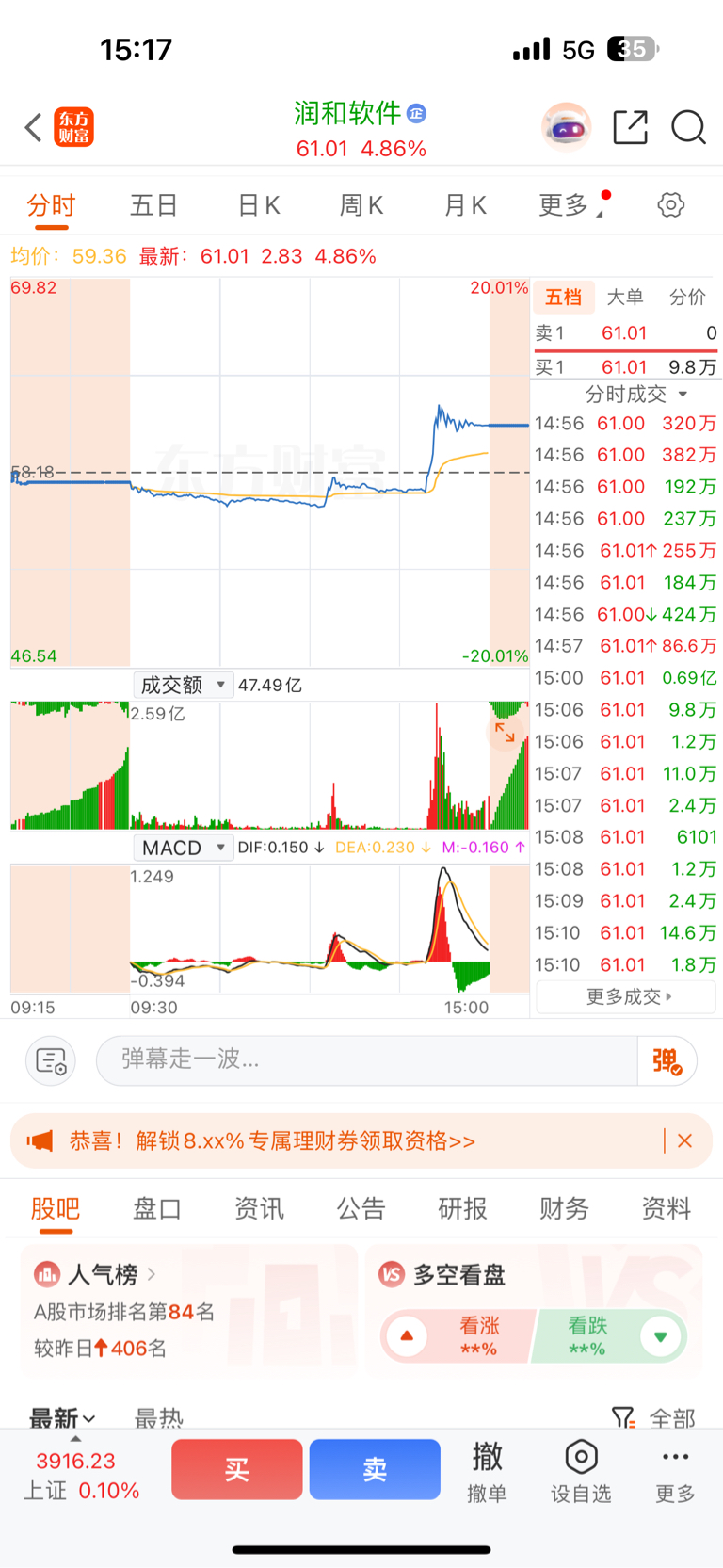 $润和软件(SZ300339)$ 是我看错了么3点10分还有成交?