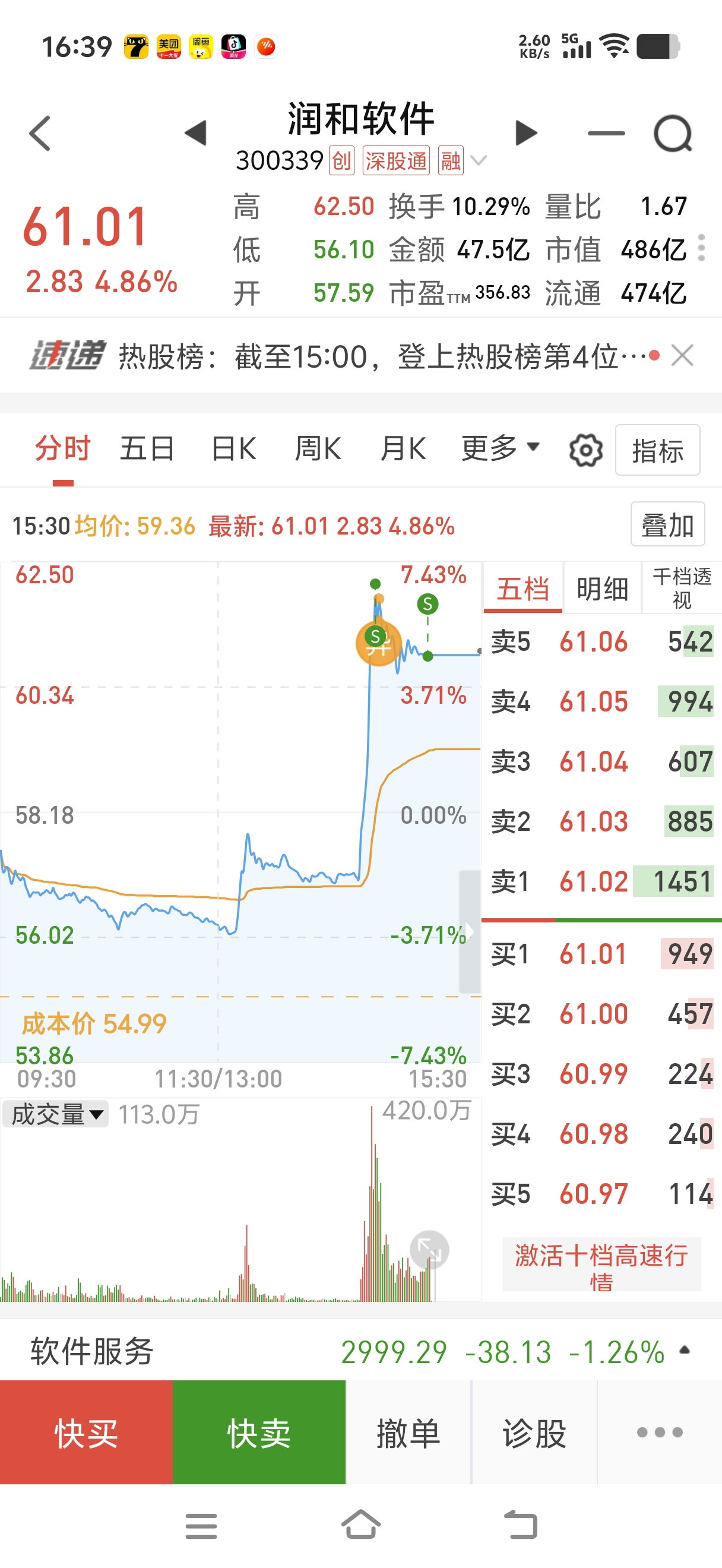 $润和软件(SZ300339)$ 拿了好久,那个就是卖