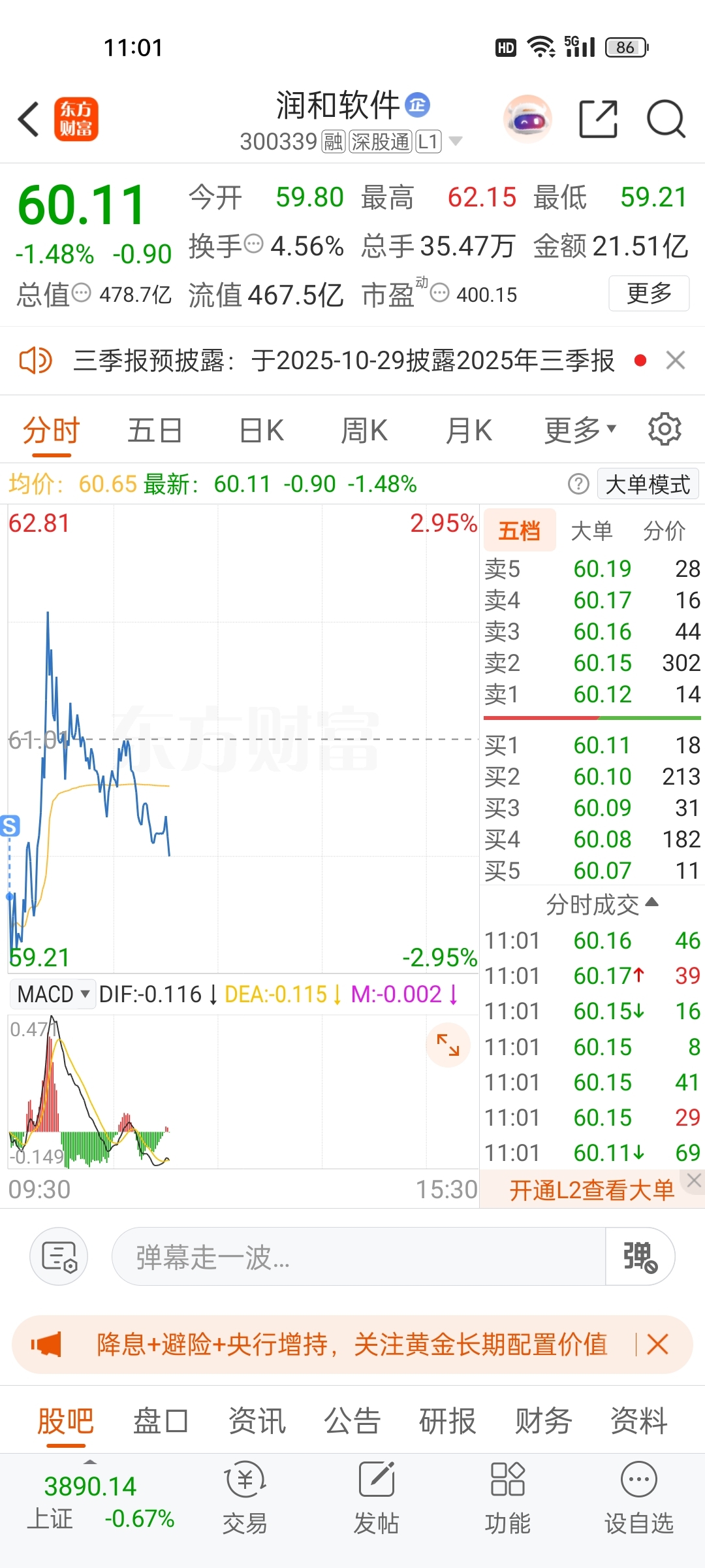$润和软件(SZ300339)$ 昨天56进,今天59.8出,也好也好啊