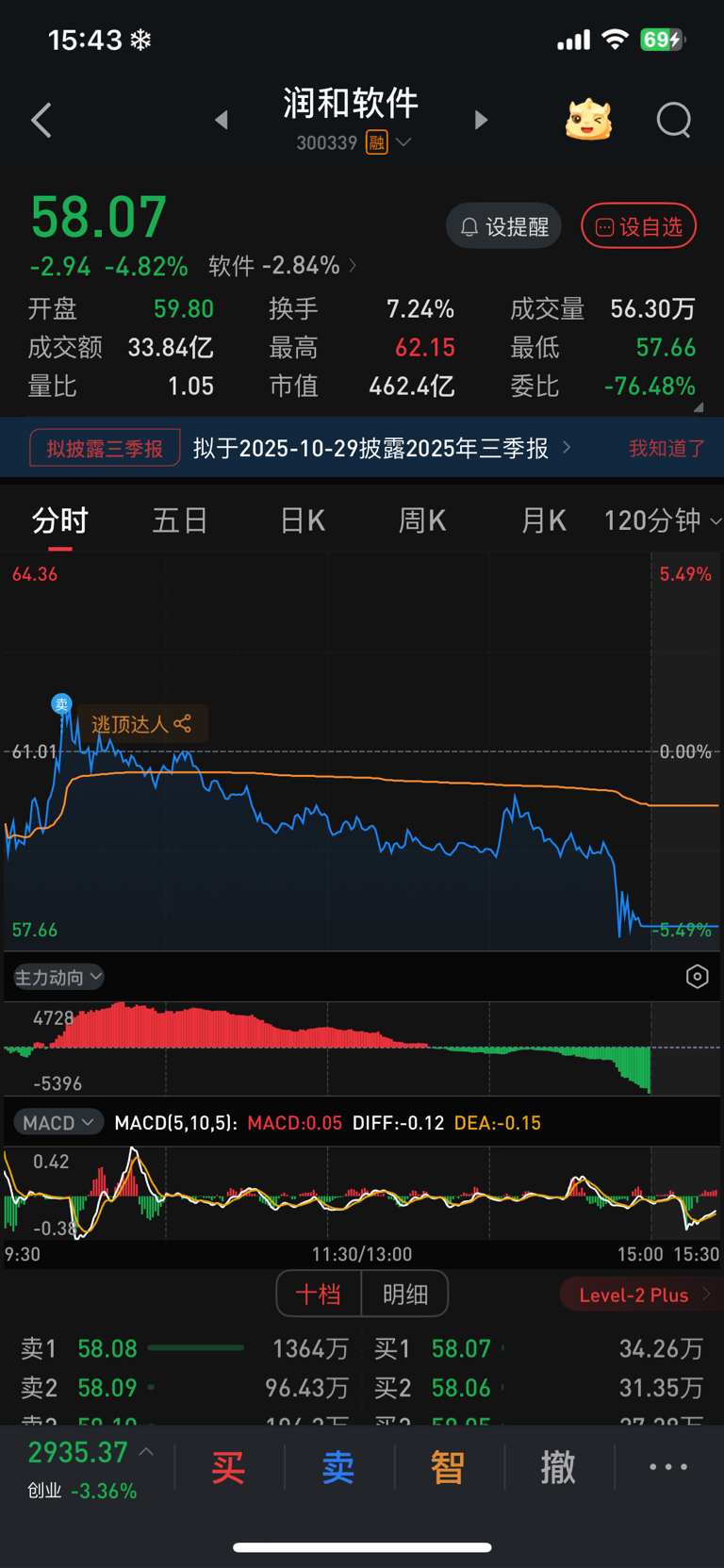 $润和软件(SZ300339)$ 早上冲高就跑了