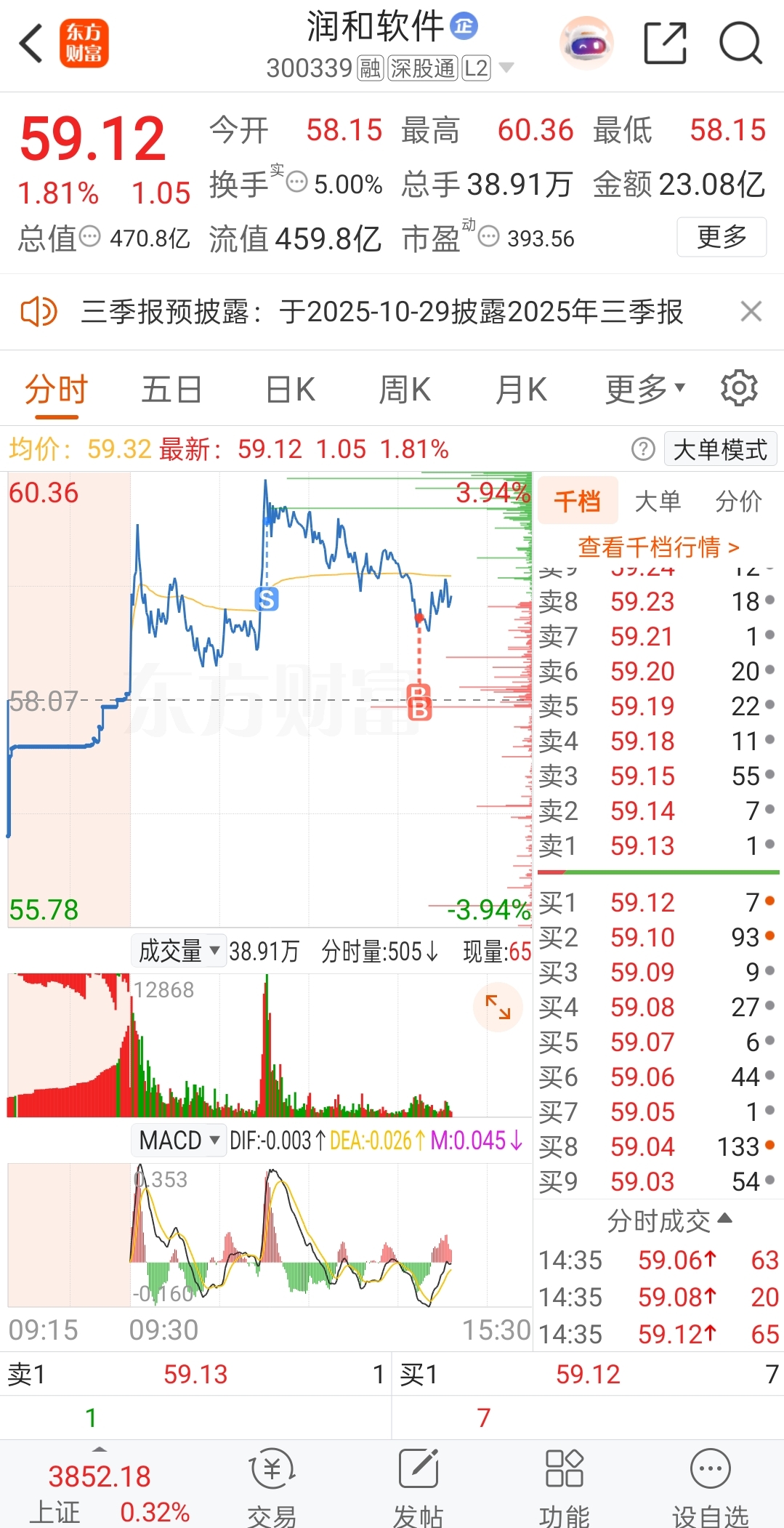 $润和软件(SZ300339)$ 都在骂这行情不追高谁能套你们,润和还在箱体等着就行了,下也下不去上也上不去短时间就是磨人行情