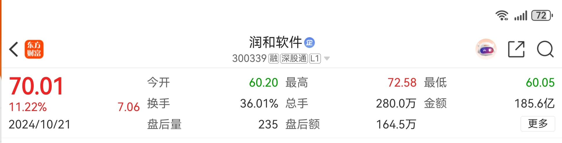 $润和软件(SZ300339)$ 去年的今天:上证还是3268,创业板2210,润和70块;而今天,上证上涨了650点,近+20%,创业板上涨了870点,近+40%,而润和……下跌了近12块,近-18%