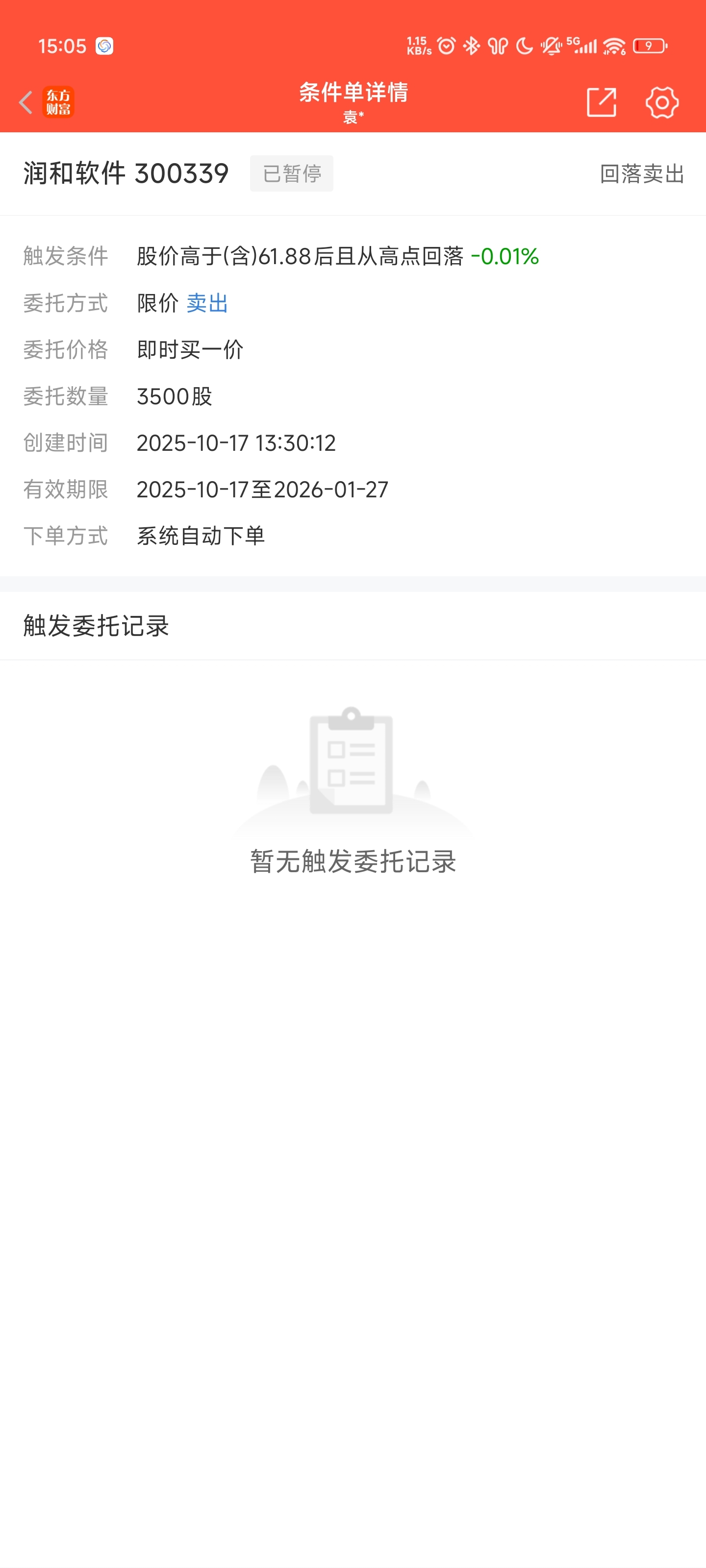 $润和软件(SZ300339)$ 我是真傻,最后一刻把这个条件单暂停了