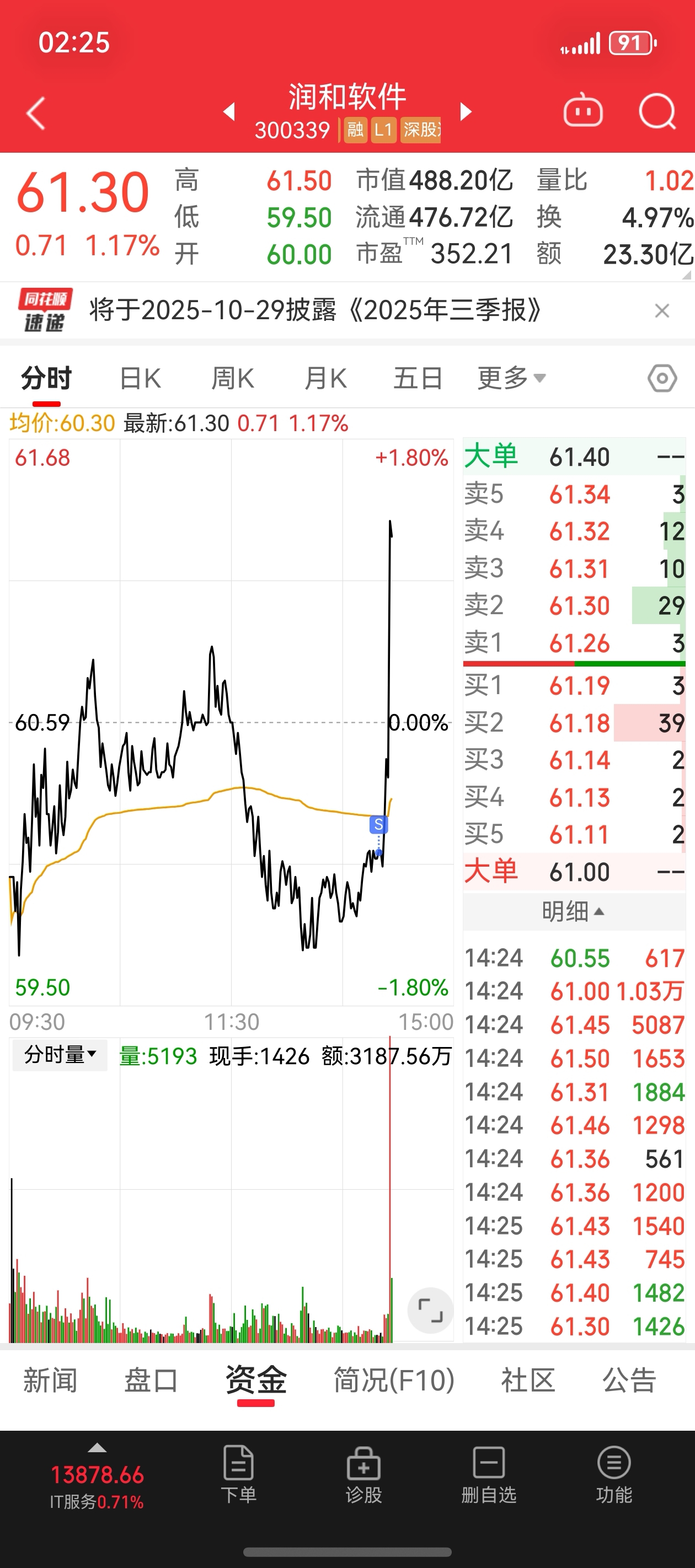 $润和软件(SZ300339)$ 兄弟们加油!我下车了