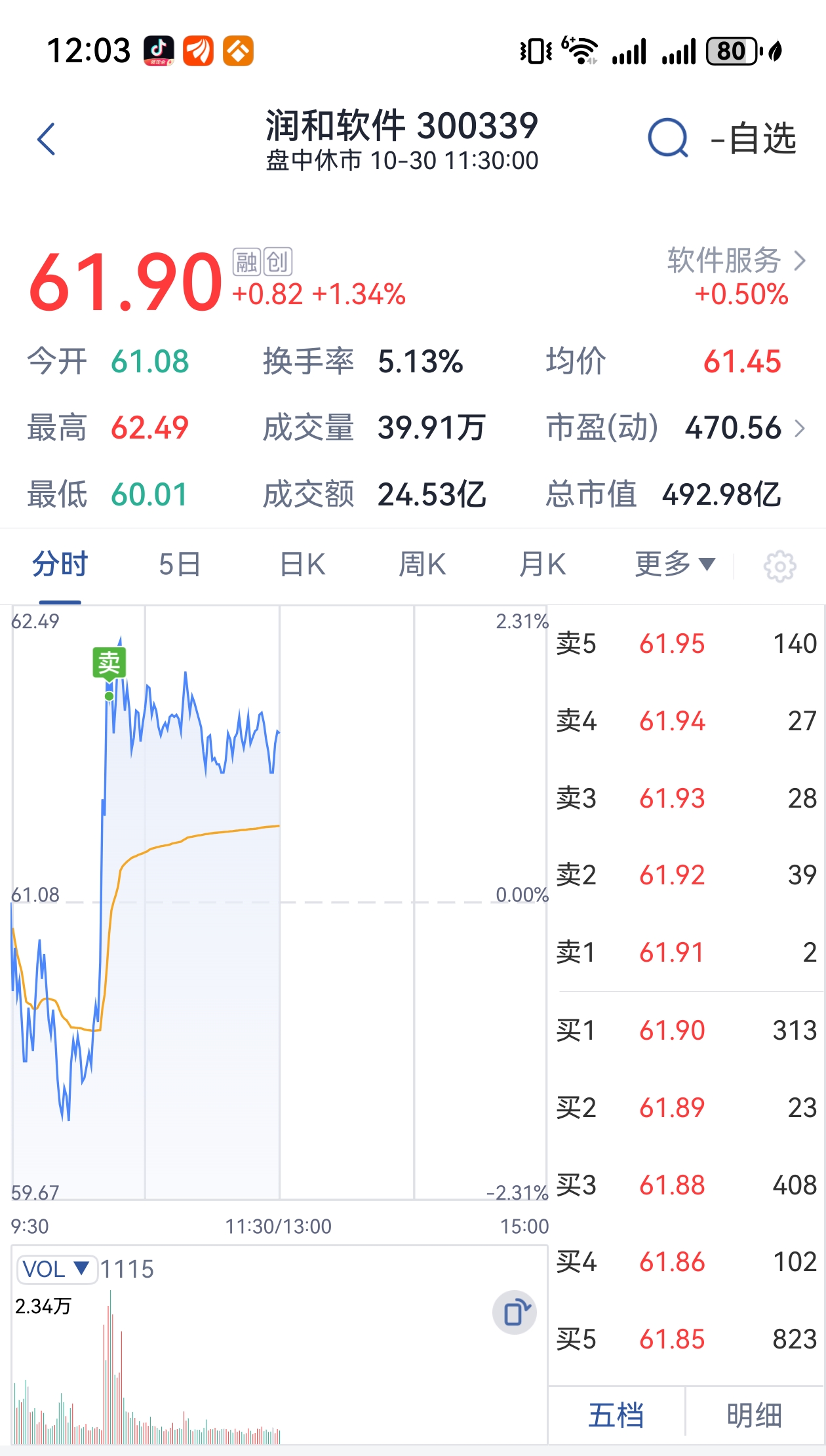 $润和软件(SZ300339)$ 早上开会前挂单62.3成交,小赚16个点,谢谢