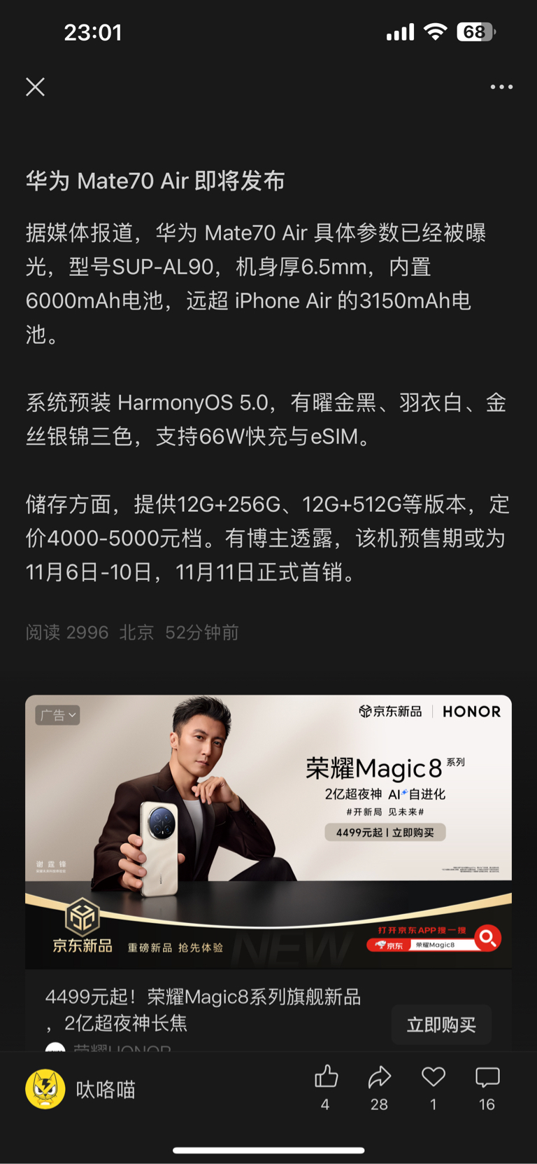 华为手机上市了
