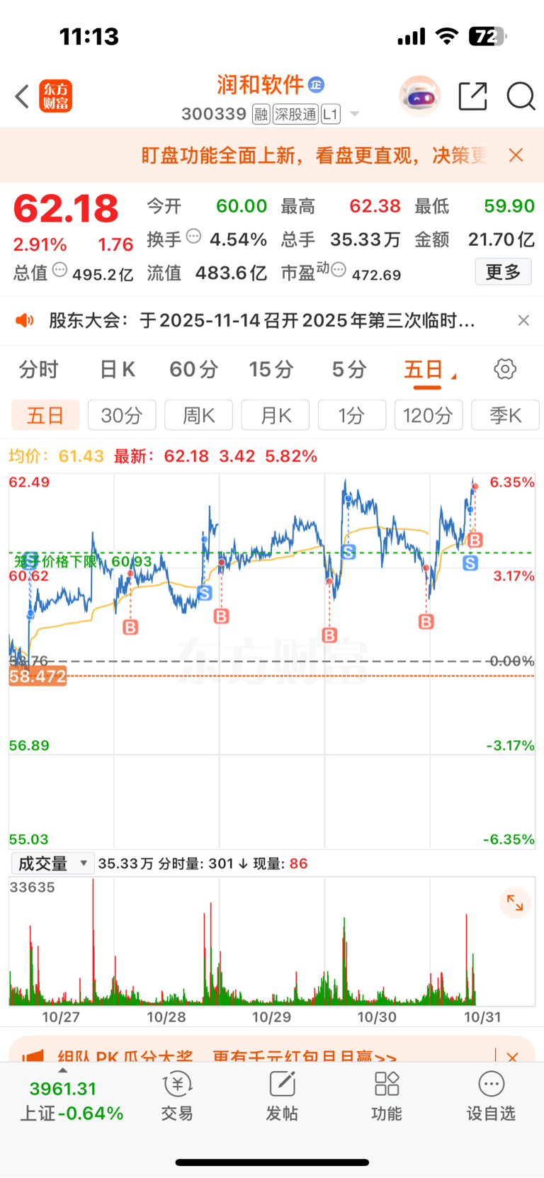 $润和软件(SZ300339)$ 怎么卖出去的,怎么追回来,怎么被套