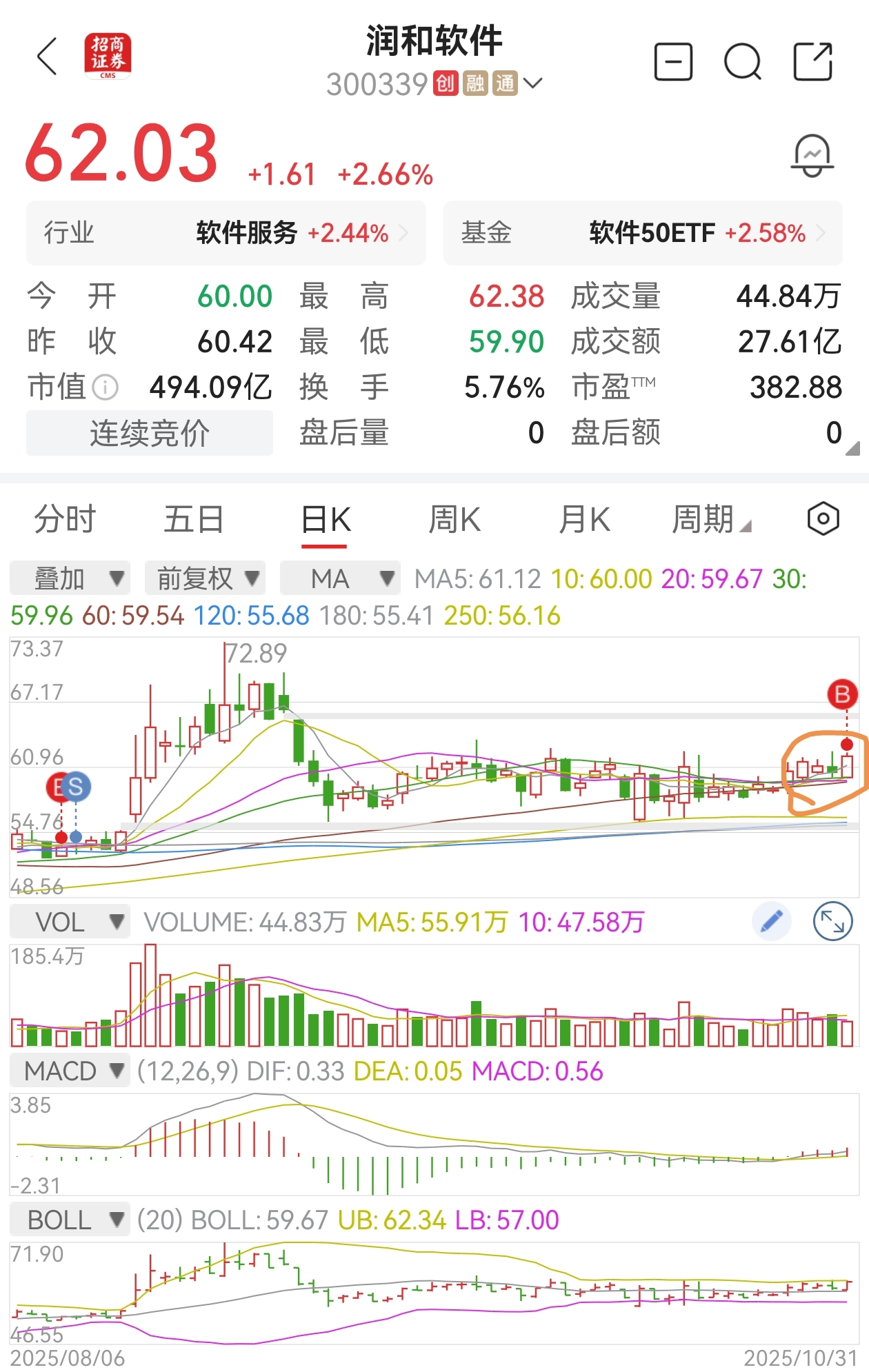 均线揉搓粘合,五日线抬高日K底部,这是很常见要向右上方发散的造型,来一根4%以上的涨幅线就很明显了。易中天之类的硬科技差不多到头了,11月看软科技的,今天AI智能体已经先行一步了,你也有这概念,而且后面还有鸿蒙6这个大招呢