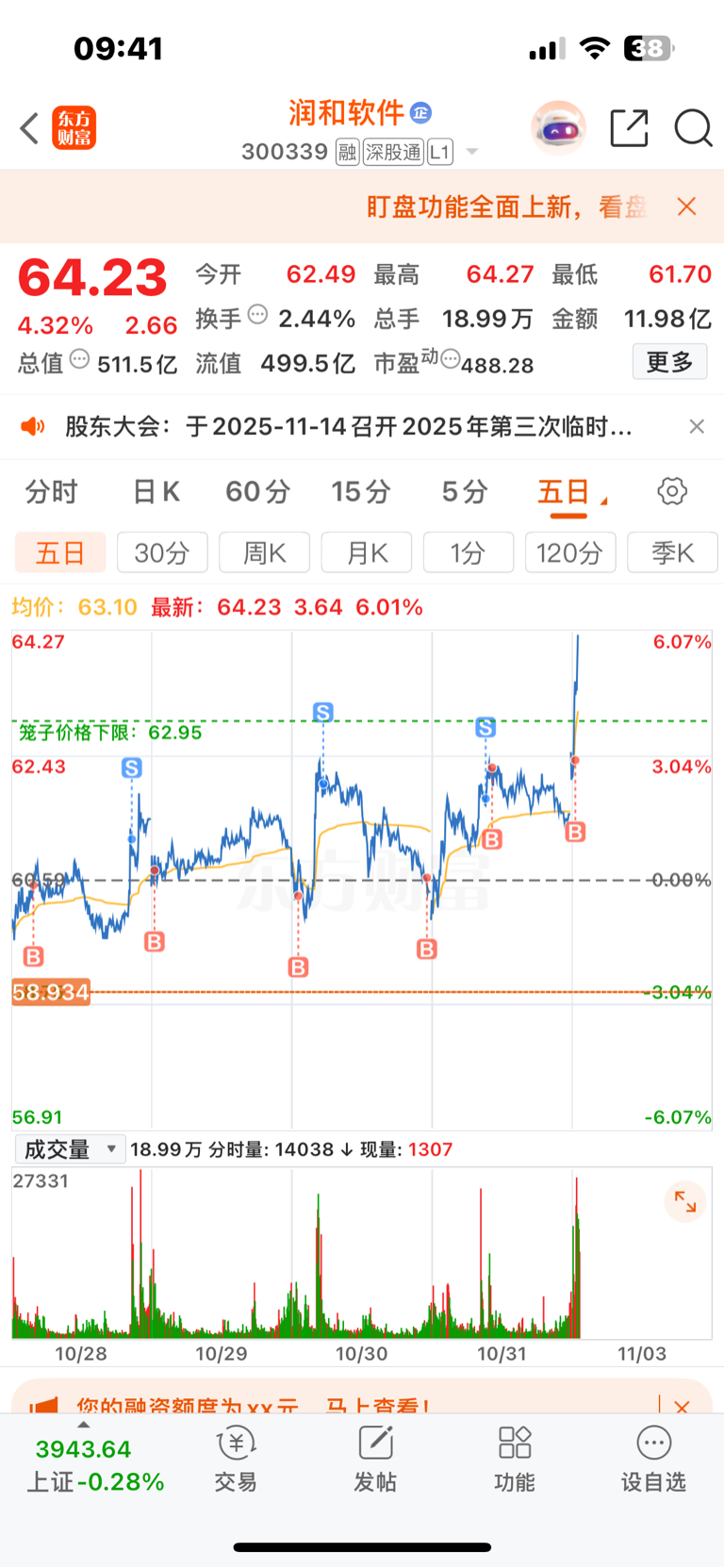 $润和软件(SZ300339)$ #炒股日记# 对的时间做对的事,跟着感觉走!