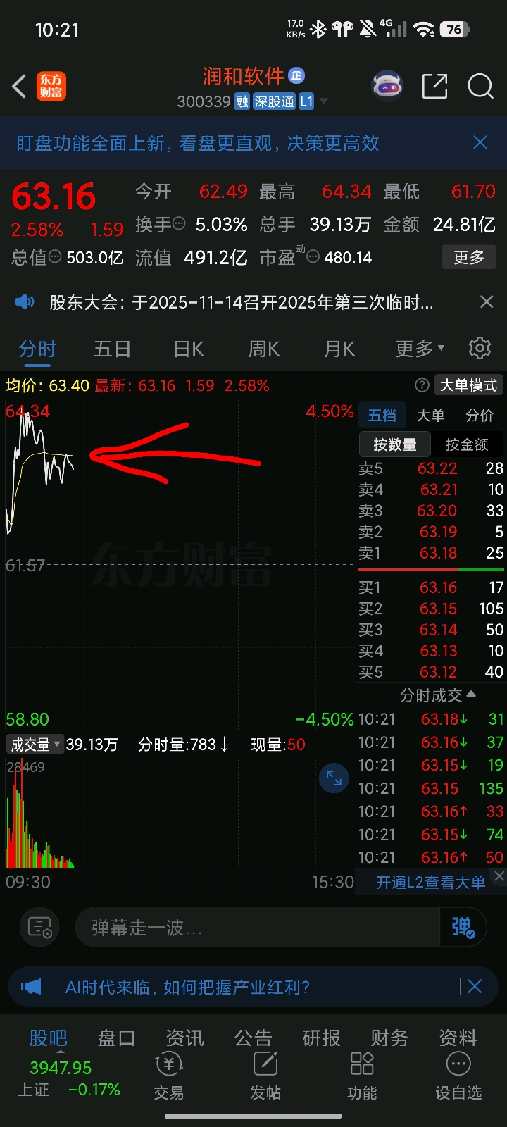 $润和软件(SZ300339)$ 均线微微向下,并且,价格被均线压制,大概率持续往下