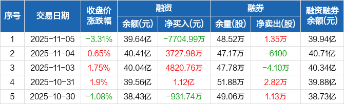 润和软件:融资净偿还7704.99万元,融资余额39.64亿元(11-05)