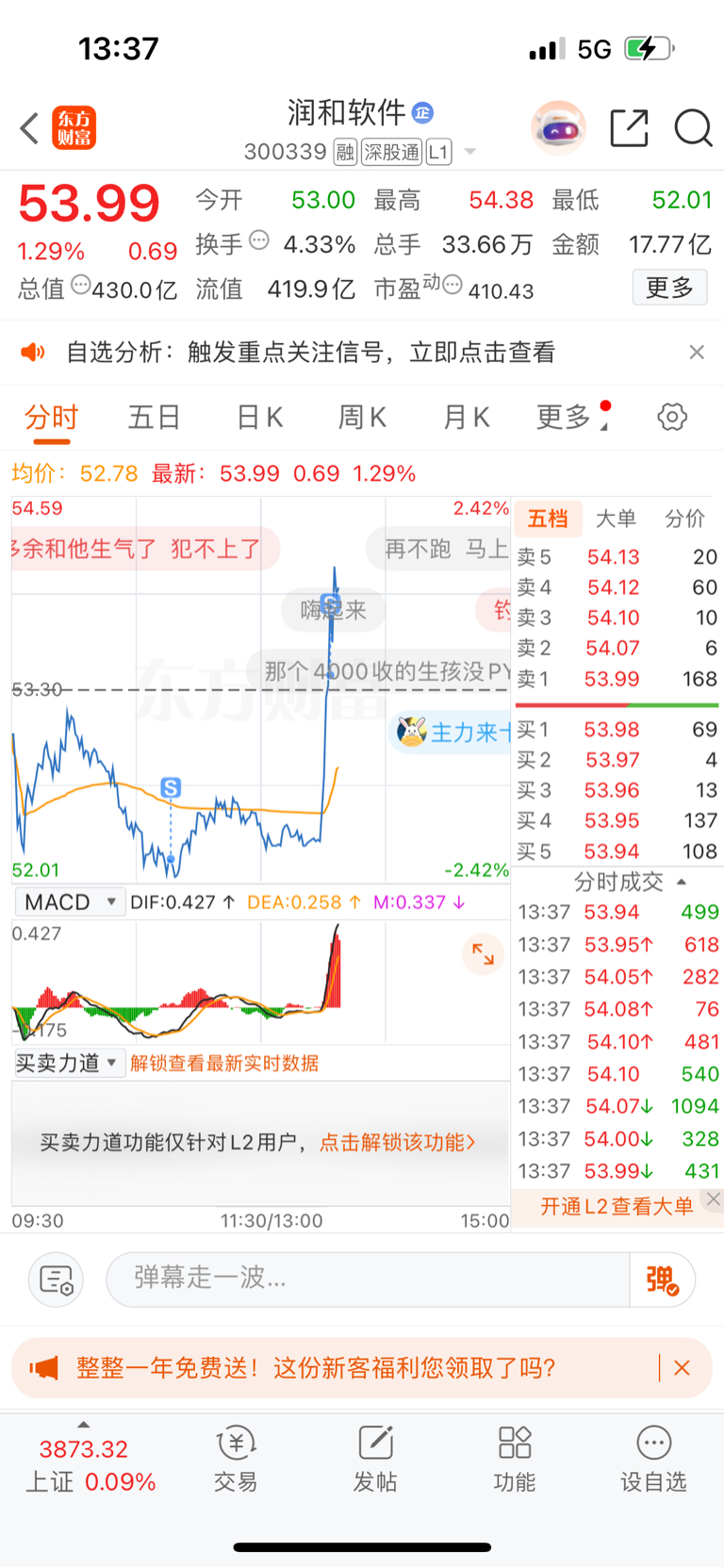 $润和软件(SZ300339)$ 就盯着我薅吗?最低点卖了