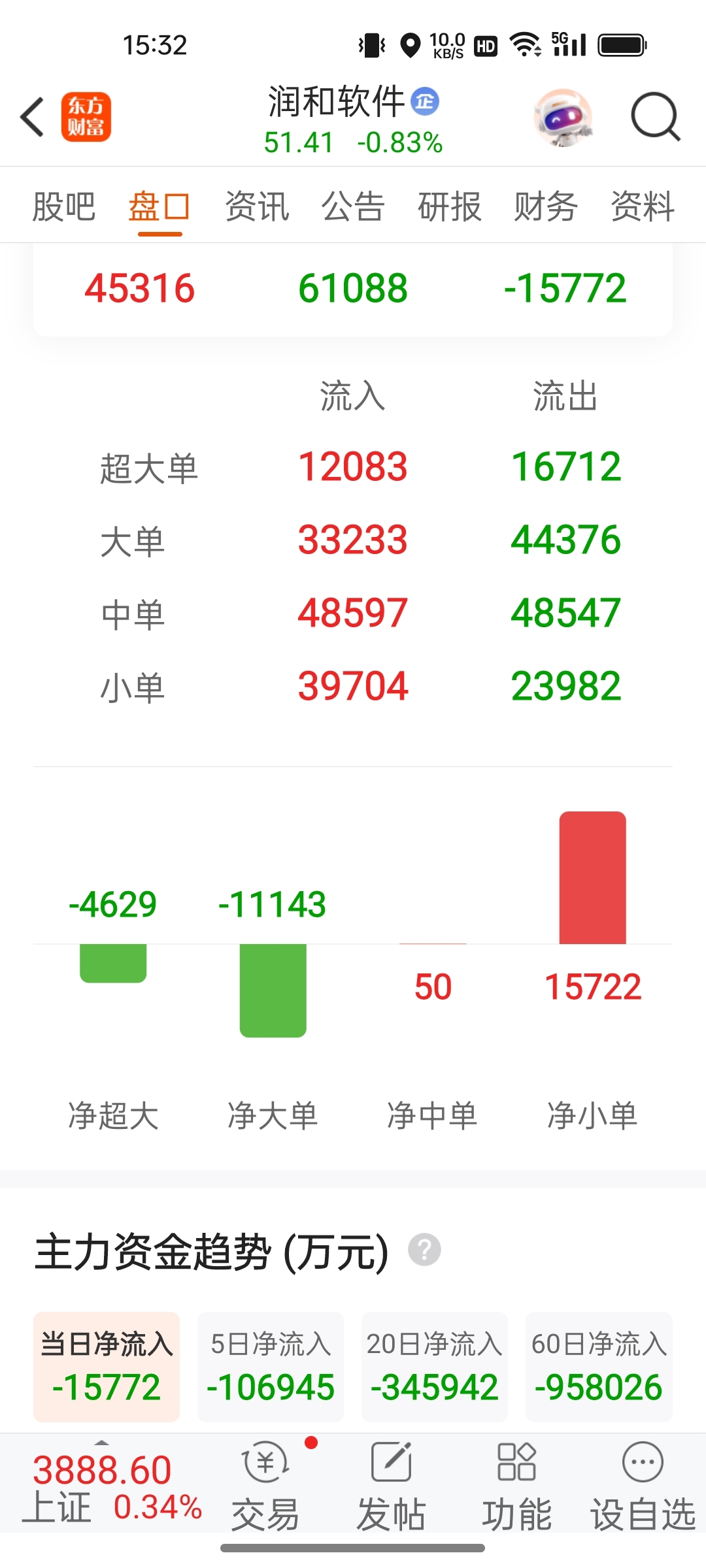 $润和软件(SZ300339)$ 马得今天主力资又跑了1.5个多亿了吗?