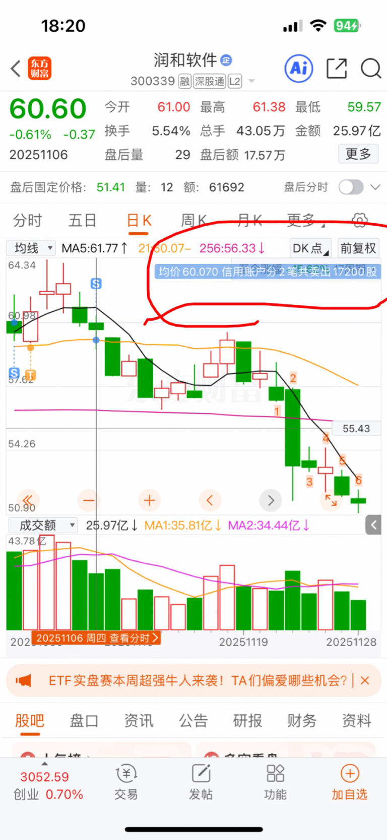 $润和软件(SZ300339)$ 还好割肉割的早 61的本割了 一百万的持仓 不然我不得爆仓