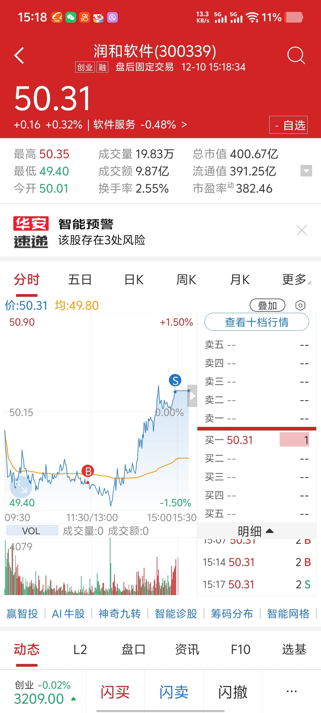 $润和软件(SZ300339)$ 做了个小T,还拉尾盘走了一半,明早接回!