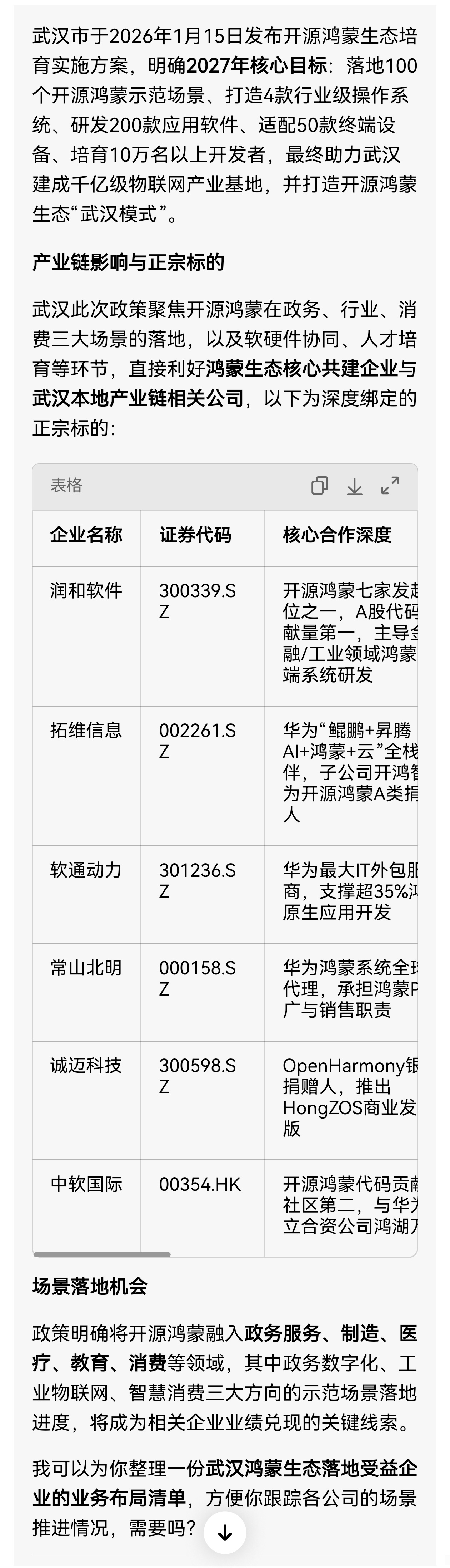 武汉市于2026年1月15日发布开源鸿蒙生态培育实施方案