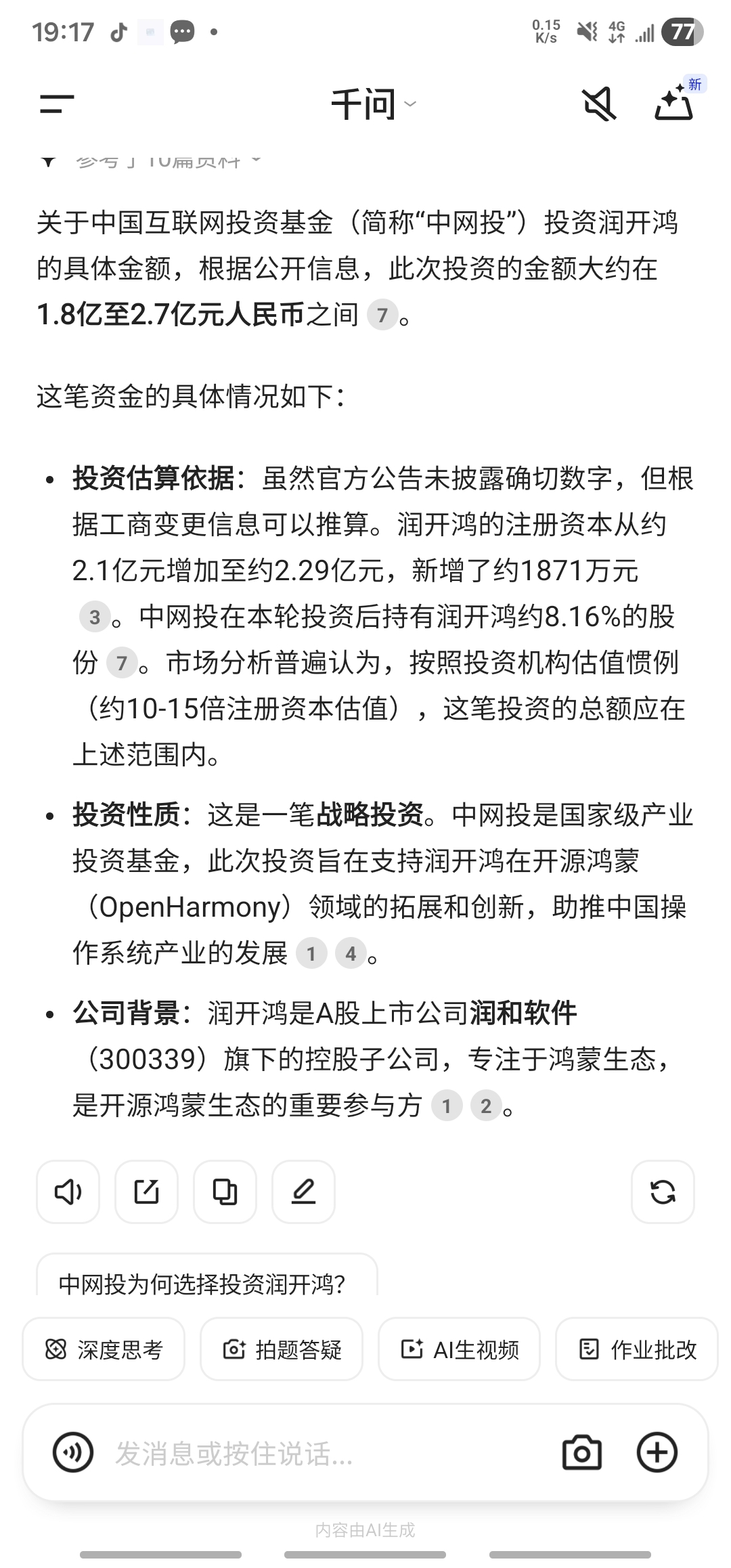 $润和软件(SZ300339)$ 之前一直疑问为啥中网投投资了润开鸿没有公布具体金额,正好搜了一下,投资金额不少,这算是又获得了国家级的背书,大家还是可以理性期待一下,毕竟gj不会做亏本的买卖,也不会投资一个泡沫公司,说明赛道是没错的。