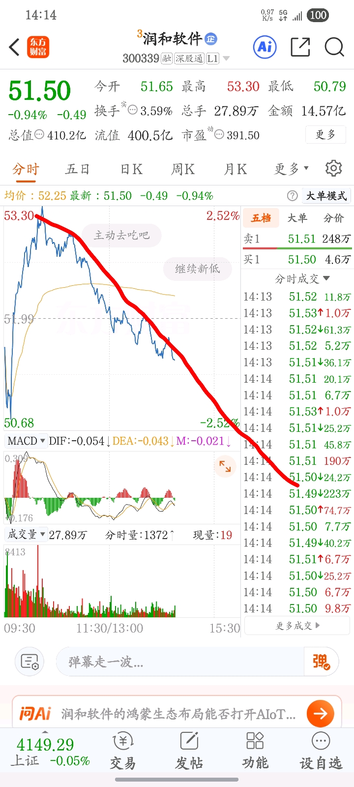 $润和软件(SZ300339)$ 拟合了一下收盘价大致是50.5