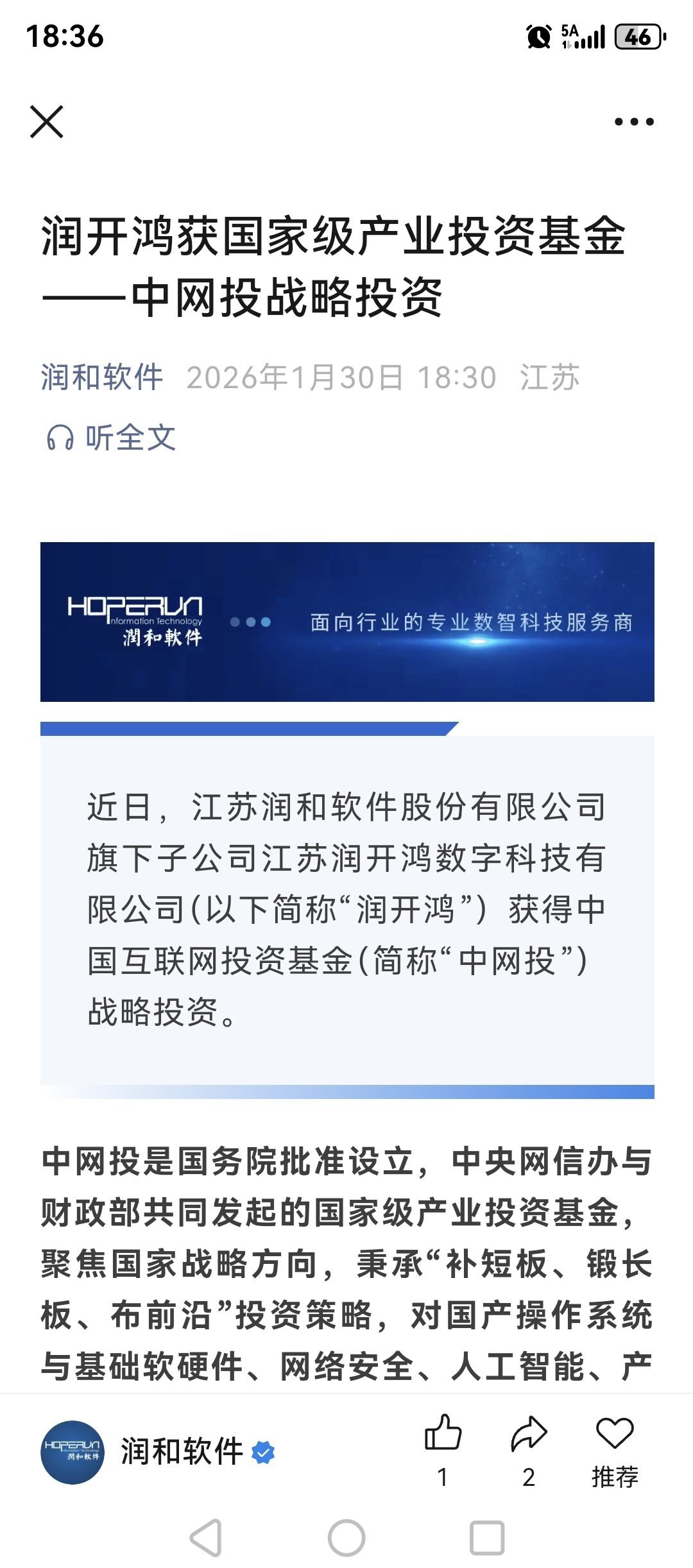 $润和软件(SZ300339)$
