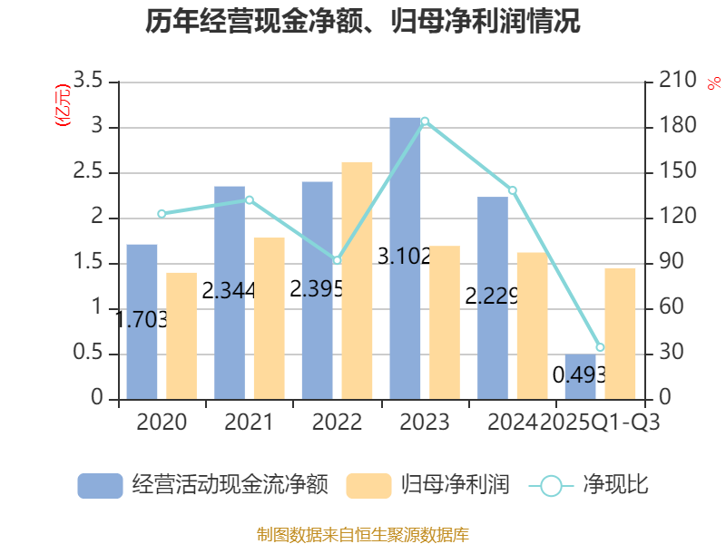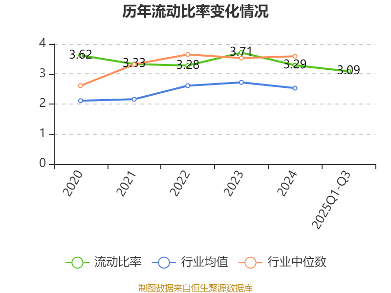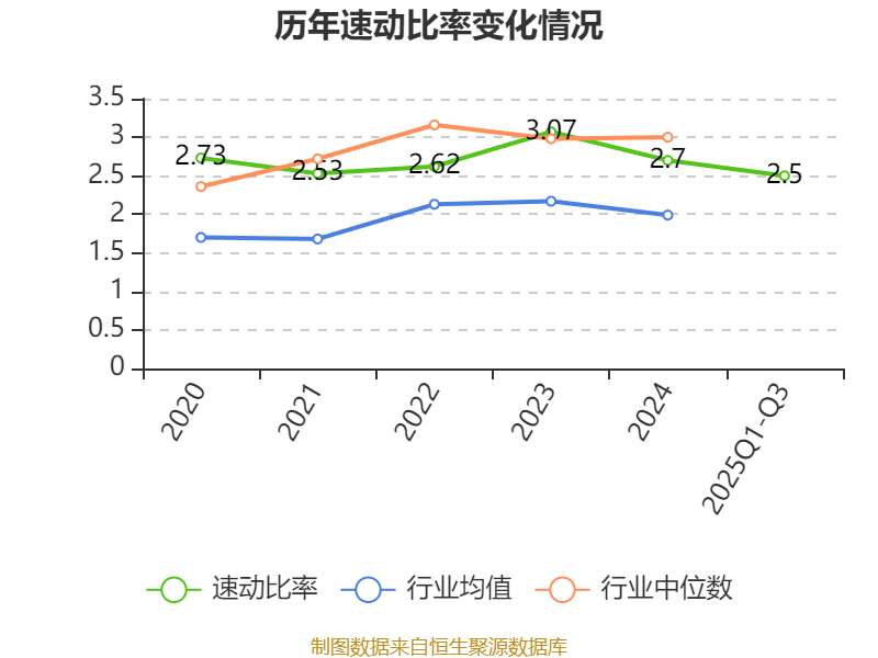 2025年前三季度,公司流动比率为3.09,速动比率为2.5。