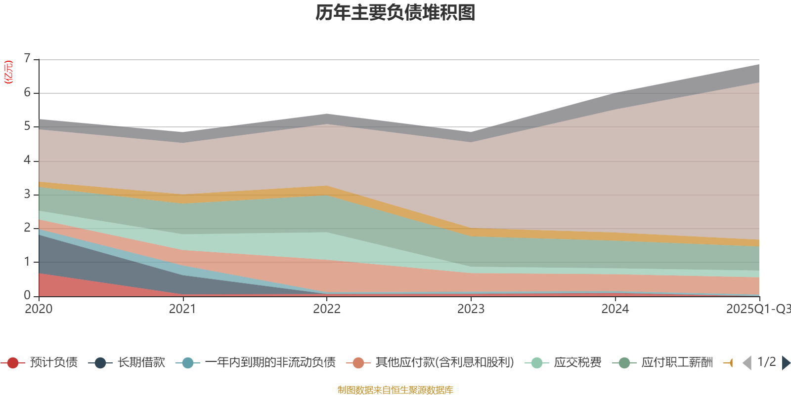 负债重大变化方面,截至2025年三季度末,公司应付票据及应付账款较上年末增加27.91%,占公司总资产比重上升2.75个百分点;应付职工薪酬较上年末减少13.09%,占公司总资产比重下降0.61个百分点;预计负债较上年末减少100%,占公司总资产比重下降0.37个百分点;其他流动负债较上年末增加171.89%,占公司总资产比重上升0.36个百分点。