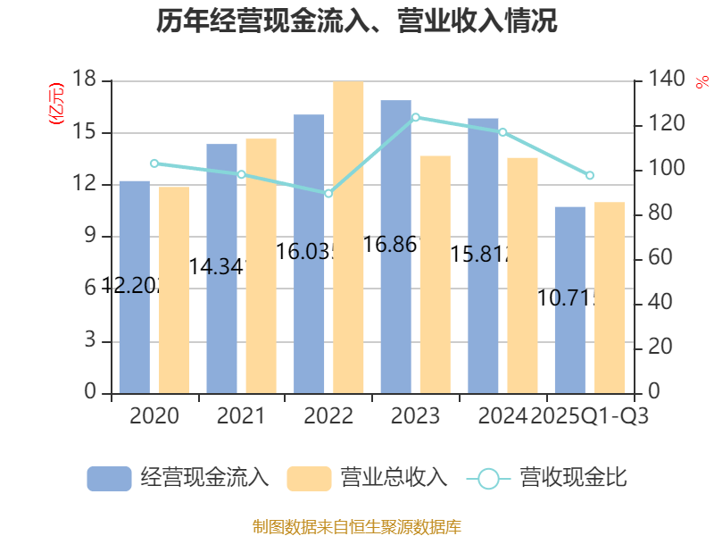 2025年前三季度,公司经营活动现金流净额为4926.96万元,同比下降70.31%;筹资活动现金流净额-3774.29万元,同比增加165.43万元;投资活动现金流净额-3853.43万元,上年同期为-6930.03万元。