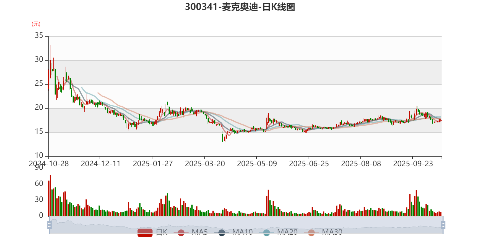 中证智能财讯麦克奥迪(300341)10月27日披露2025年第三季度报告。前三季度公司实现营业总收入10.99亿元,同比增长10.35%;归母净利润1.44亿元,同比增长17.86%;扣非净利润1.35亿元,同比增长16.31%;经营活动产生的现金流量净额为4926.96万元,同比下降70.31%;报告期内,麦克奥迪基本每股收益为0.2785元,加权平均净资产收益率为7.72%。