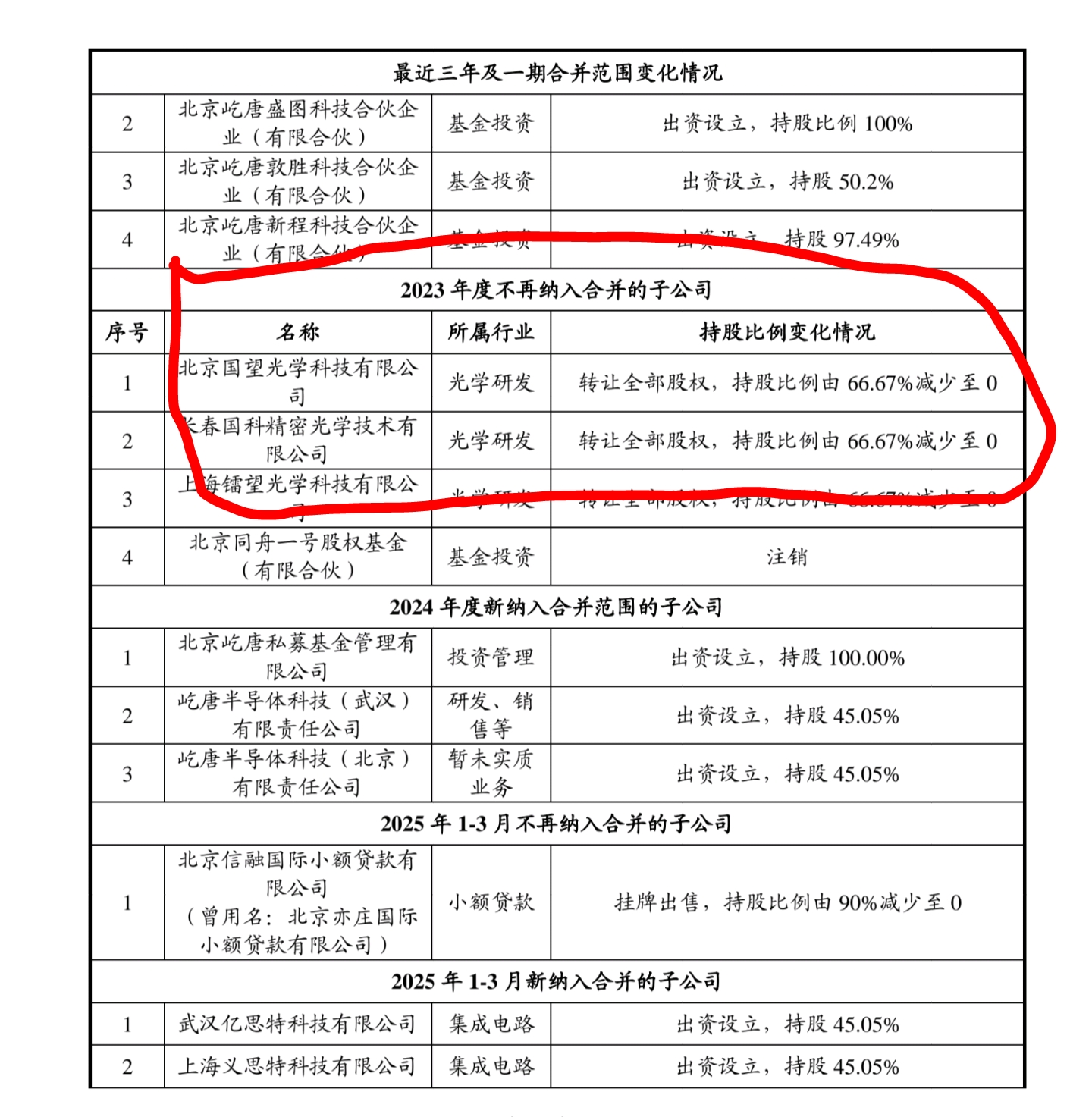 $麦克奥迪(SZ300341)$ 亦庄国投的公开文件(2025年超短期融资券募集说明书)显示,国望光学和长春国科精密在2023年度已不再纳入其合并报表范围 。这强烈暗示该资产的控制权已发生转移。