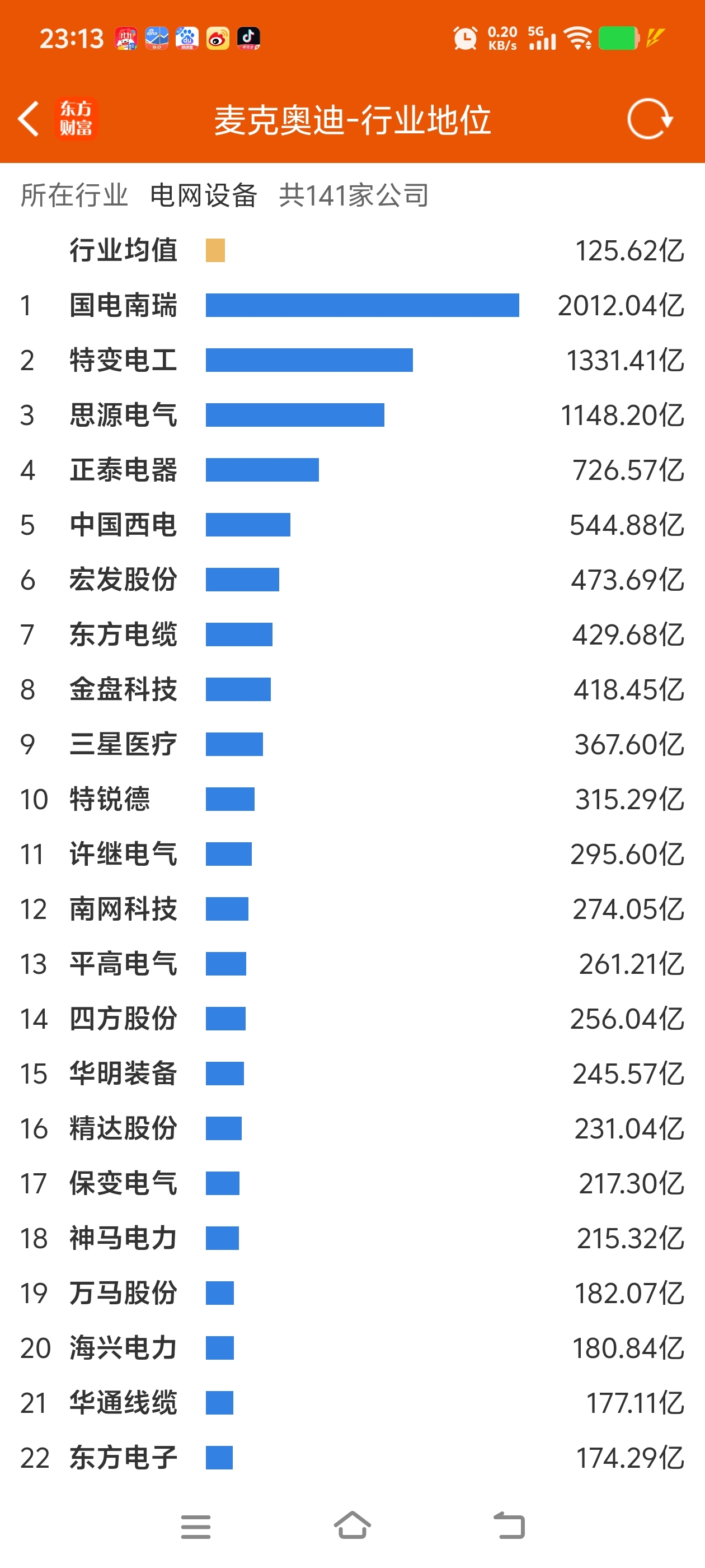 在A股电网设备行业141家公司中排名34,不是龙头,难怪没人炒