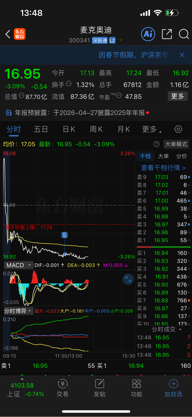 $麦克奥迪(SZ300341)$ 和潜力,卖错也卖出
